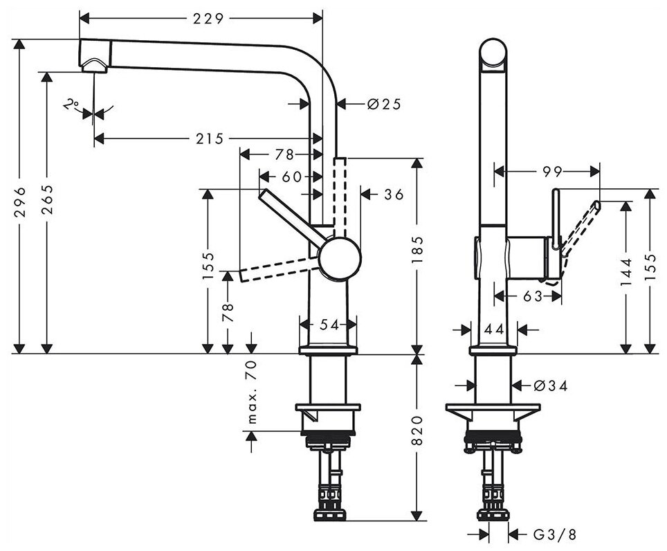 - Угол поворота излива: регулировка на 4 уровня 60, 110, 150 или 360 градусов.
