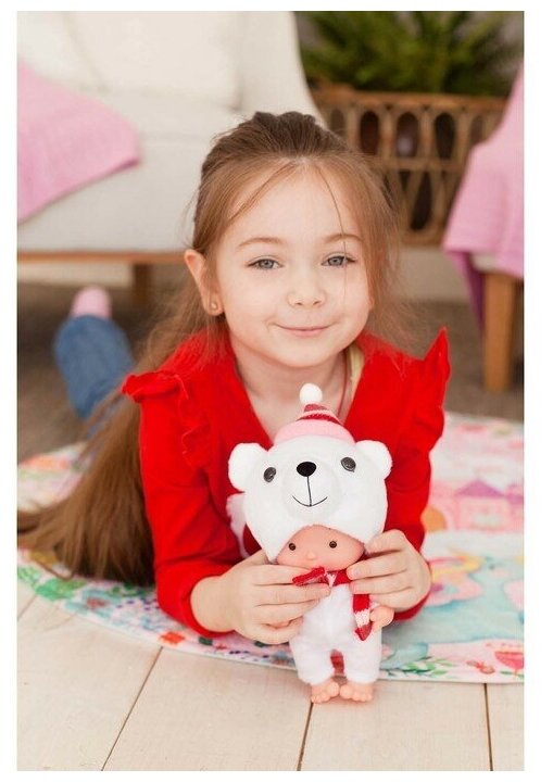 Пупса небольшого размера удобно брать с собой на прогулку, в детский сад и даже в путешествие. Костюмчик и шапочка снимаются с куклы, поэтому её можно купать. Соберите всю коллекцию и придумайте историю про милых крошиков!