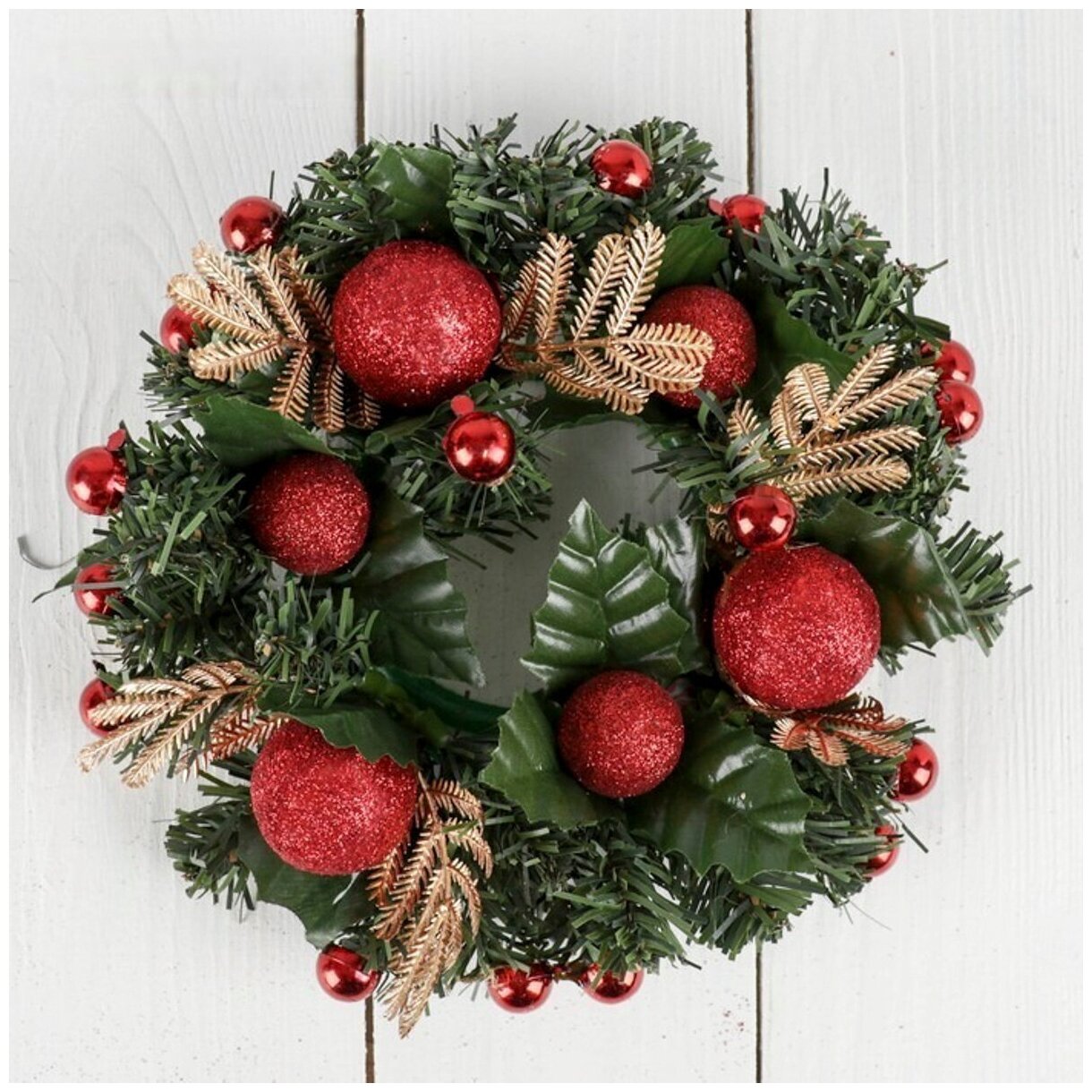 Зимнее волшебство Венок новогодний Красные шарики диаметр 20 см