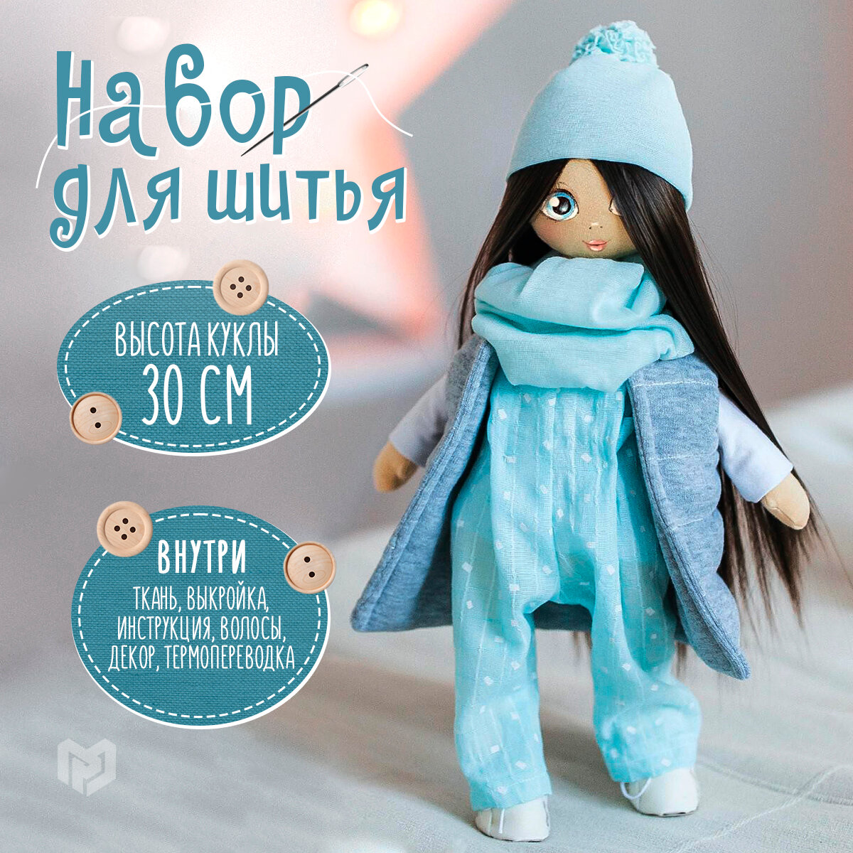 В набор для шитья входит всё необходимое:ткань,выкройки,декор,волосы,инструкция.