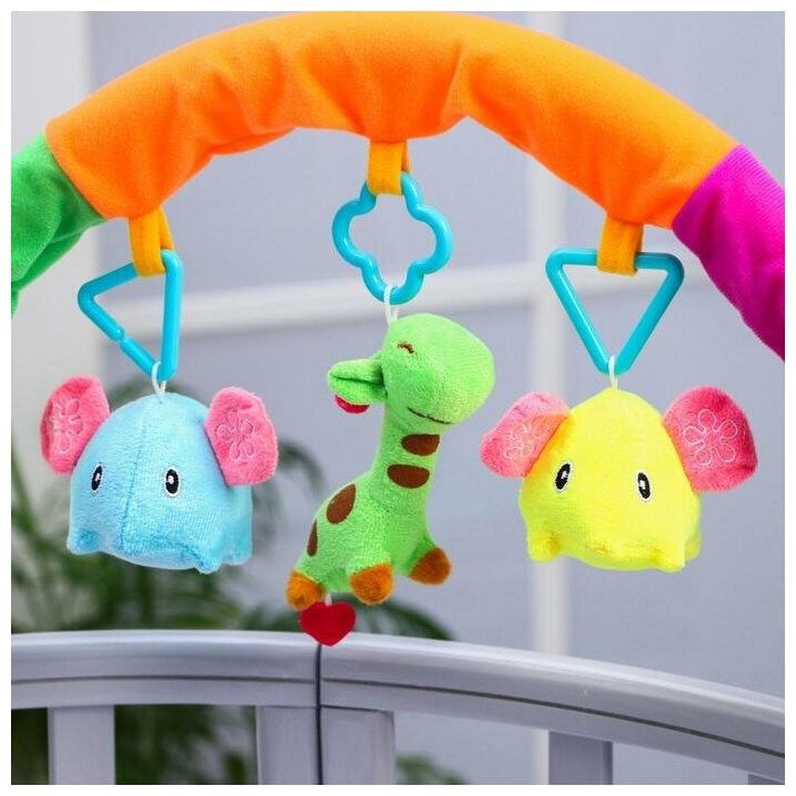 Модель: Дуга игровая мягкая на коляску и кроватку Слоники 3 игрушки