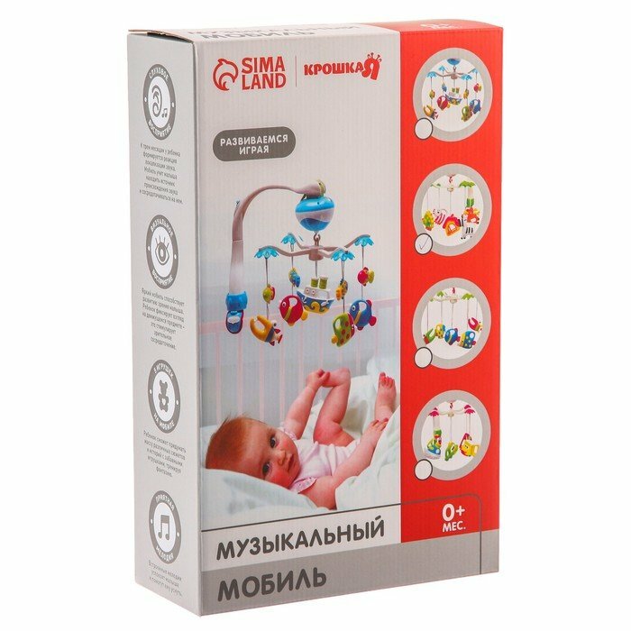 Мобиль на кроватку, проигрывающий колыбельные мелодии, отличная игрушка и подарок для малыша от 0 мес. Его можно прикрепить с помощью кронштейна, который идет в комплекте, на кроватку или коляску. Основа с игрушками вращается на 360 градусов. Все погремушки съемные, ими можно играть по отдельности, а также их очень удобно мыть. Мобиль работает от батареек типа «АА», 3 шт., которые в комплект не входят.