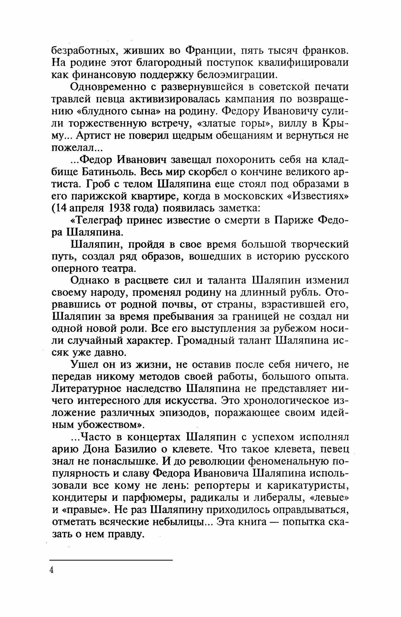 Данная книга - подробная и достоверная, насыщенная драматизмом биография Ф.И.Шаляпина. Перед читателями предстает богатая и сложная личность певца, его окружение - актеры, режиссеры, художники, писатели, политические деятели его эпохи, а также любимые женщины, дети, друзья и недруги. Читатель узнает о взлетах, удачах его творческой жизни, об ударах судьбы, годах в эмиграции. В книгу вошли ставшие известными лишь в последние годы факты жизни певца - при большевиках, в эмиграции, впервые детально освещены отношения певца с Горьким.