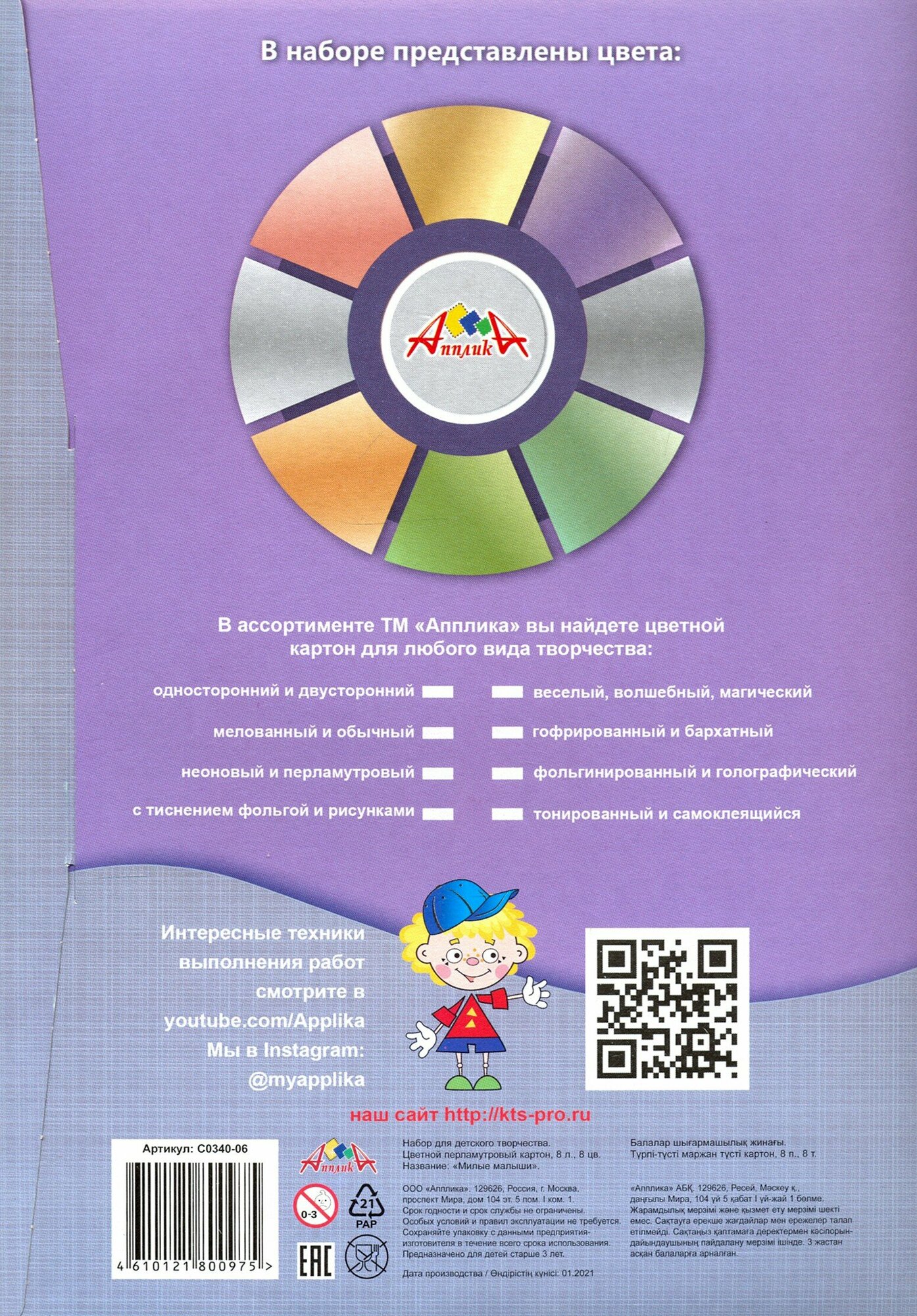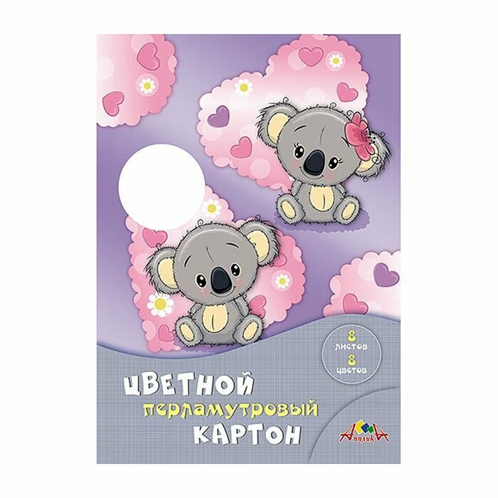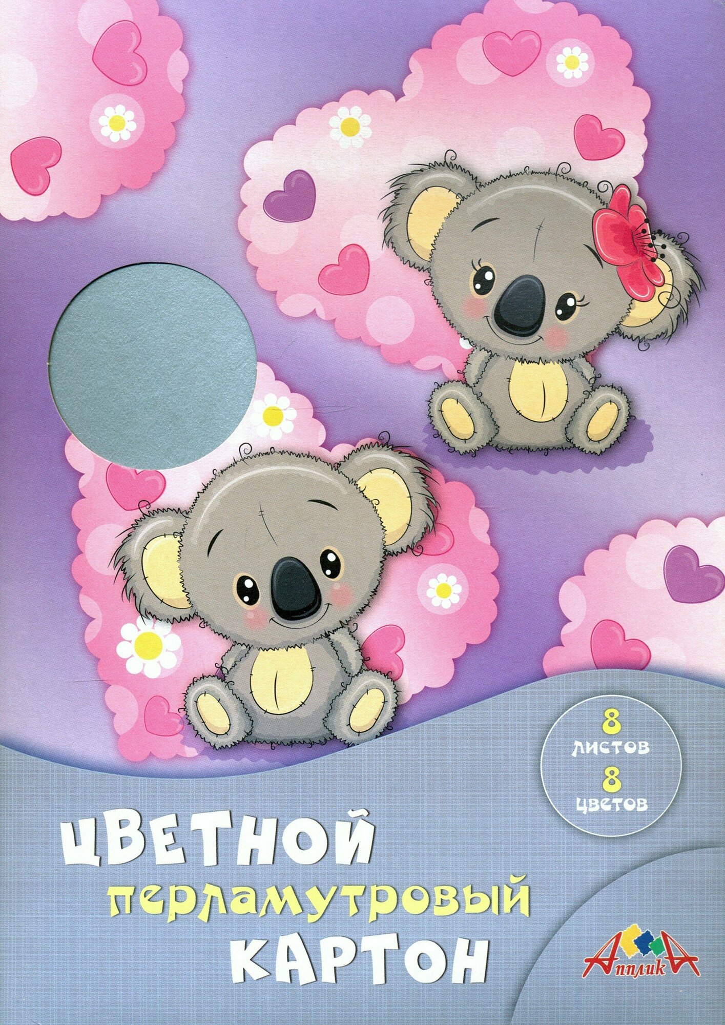 Картон цветной перламутровый 8 листов 8 цветов Милые малыши (С0340-06) АппликА