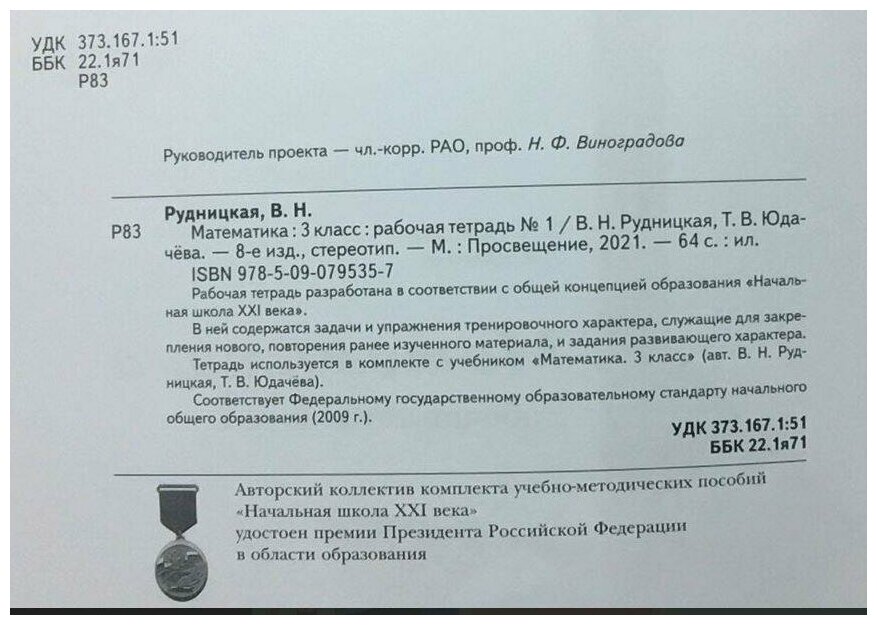 Тетрадь используется в комплекте с учебником "Математика. 3 класс" (авт. В.Н. Рудницкая, Т.В. Юдачёва).