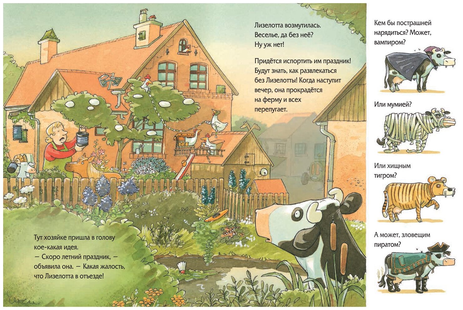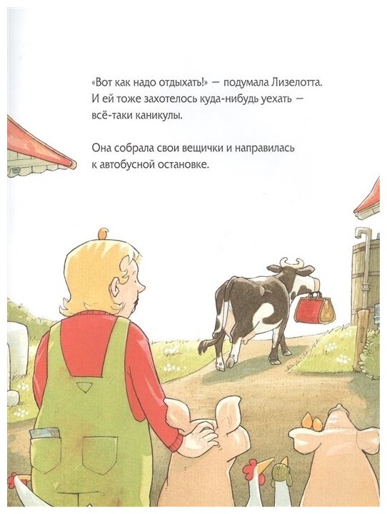Забавное приключение коровы Лизелотты, которая хочет поехать в отпуск. Очень смешно наблюдать за ее попытками отдохнуть. Здесь, как и в других книгах серии, очень много иллюстраций на которых есть мелкие детали, которые можно очень долго рассматривать.