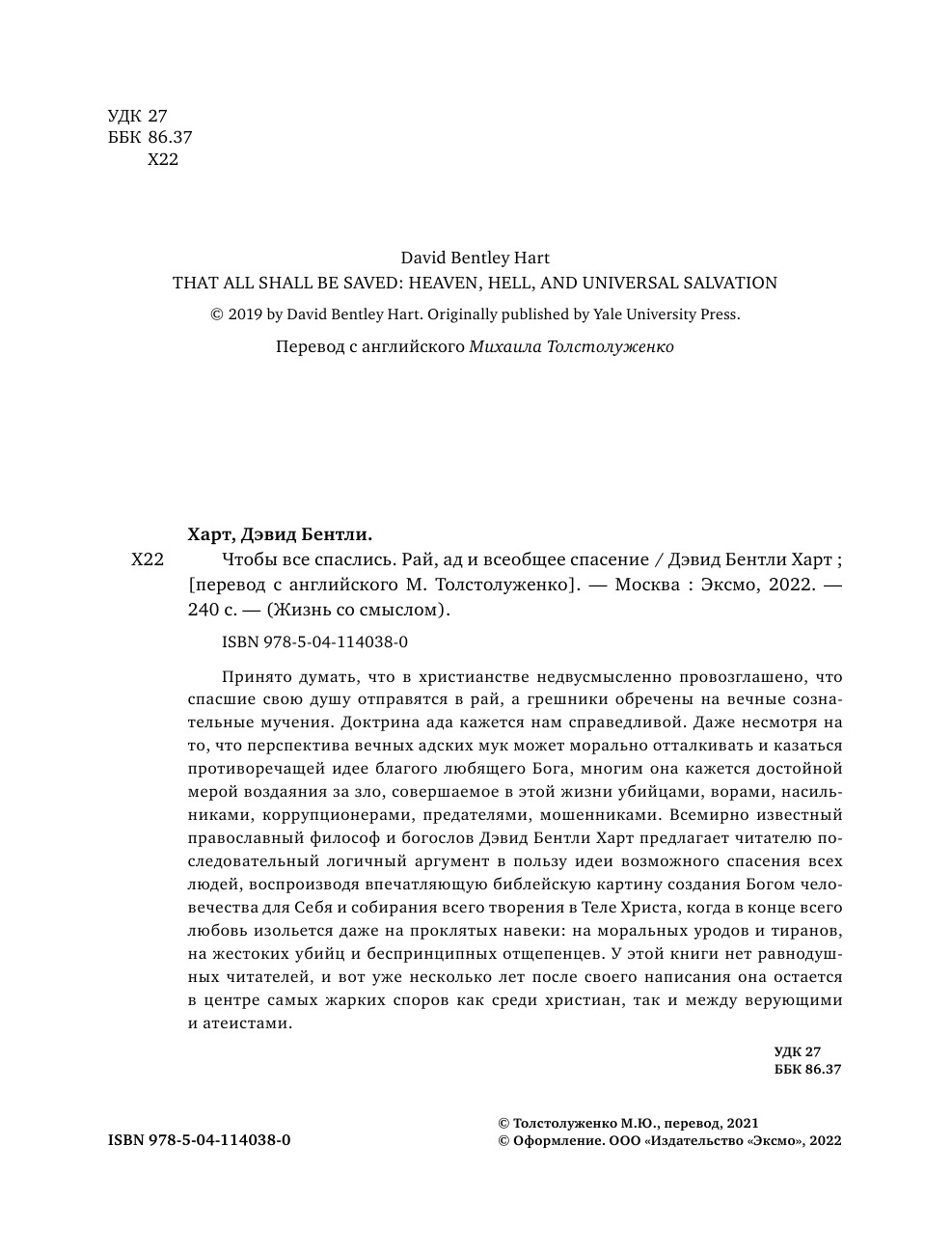 Чтобы все спаслись. Рай ад и всеобщее спасение (Харт Дэвид Бентли); ООО "Издательство "Эксмо", 2022