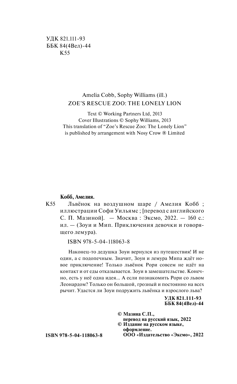 Сервис сравнения цен СкидкаГИД предлагает сравнить цены на товар «Книга: Львёнок на воздушном шаре (выпуск 1) (Амелия Кобб); Эксмо, Эксмодетство, 2021»