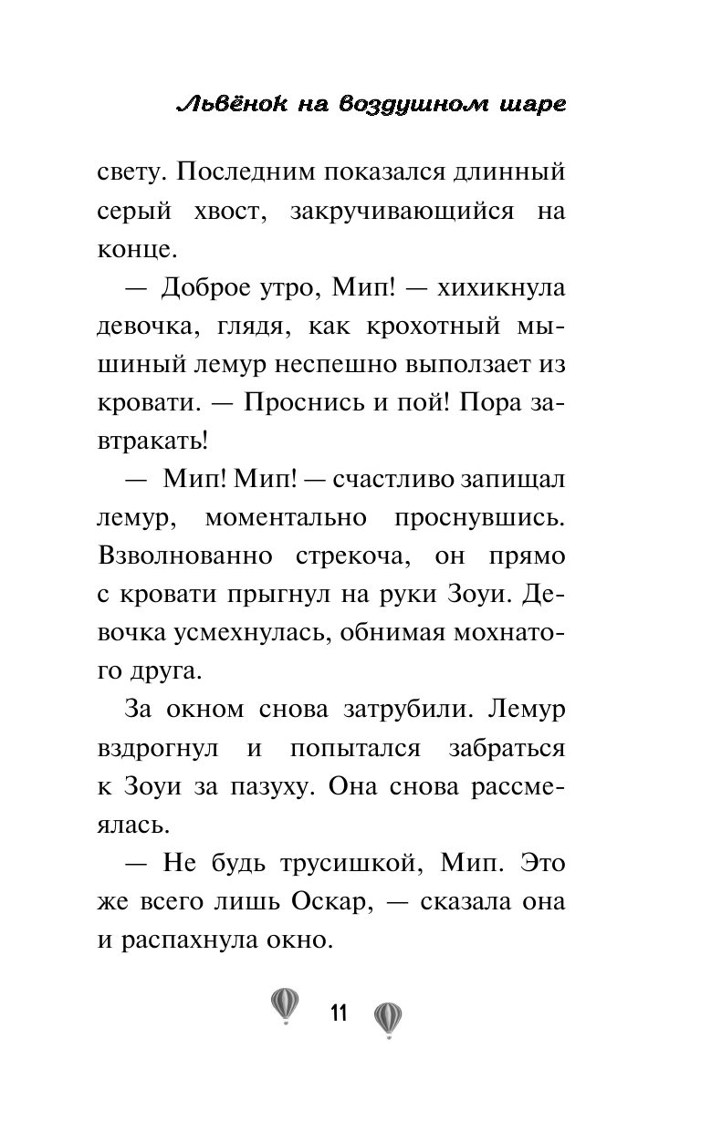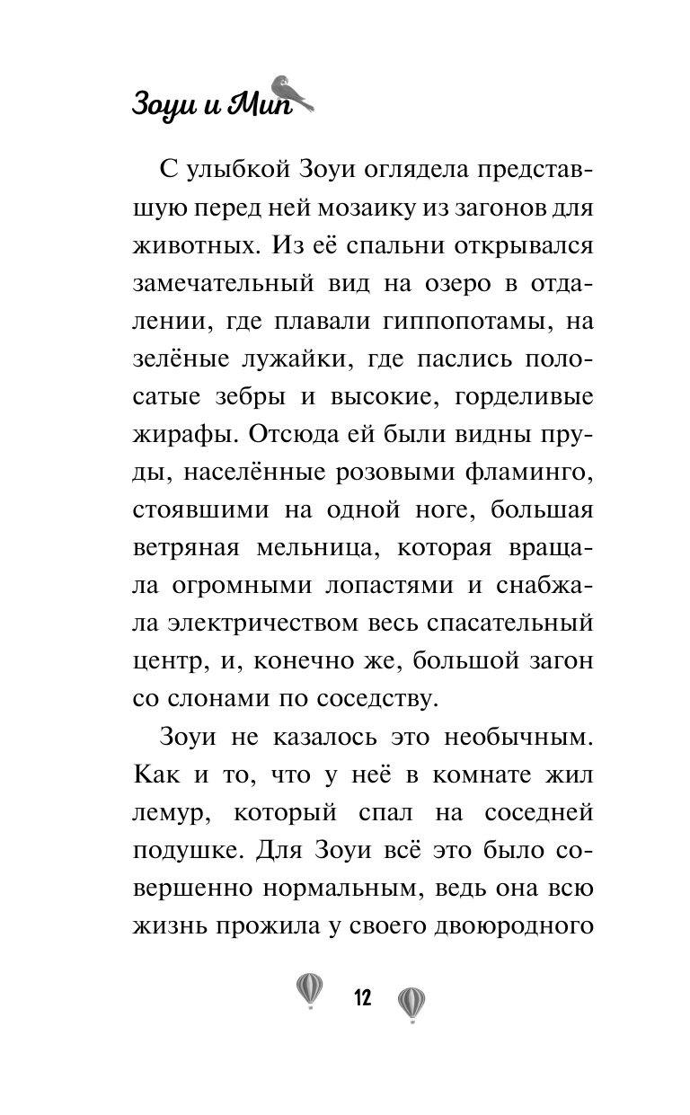 Очень милая история про девочку Зоуи и лемурчика Мипа, которые хотят подружиться со львенком. Книга идеально подойдёт для младшего школьного возраста. Дочке 9 лет очень понравилась. Идеальная книга для первого чтения: крупный шрифт и интересный сюжет. Читается быстро. Обложка толстая, картинки чёрно-белые, бумага серая, но плотная. Похоже на истории про животных Холли Вебб. Это первая книга серии, будем заказывать остальные.