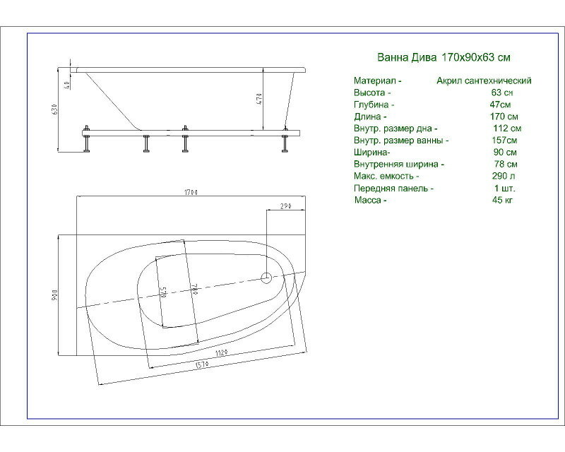 | Комплектация | ванна |