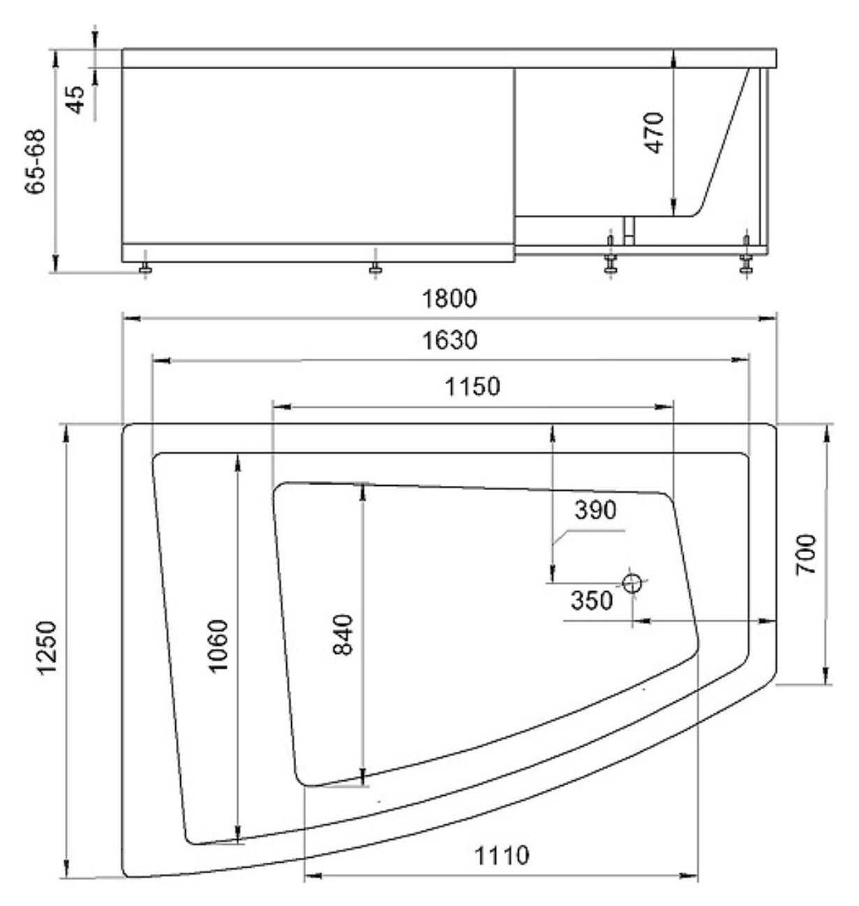| Расположение слива | Со сливом в ногах |