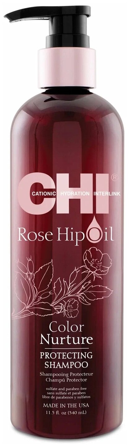 | Применение | нанесите небольшое количество на влажные волосы, вспеньте. Смойте водой. Повторите при необходимости. Затем используйте кондиционер CHI Rose Hip Oil |