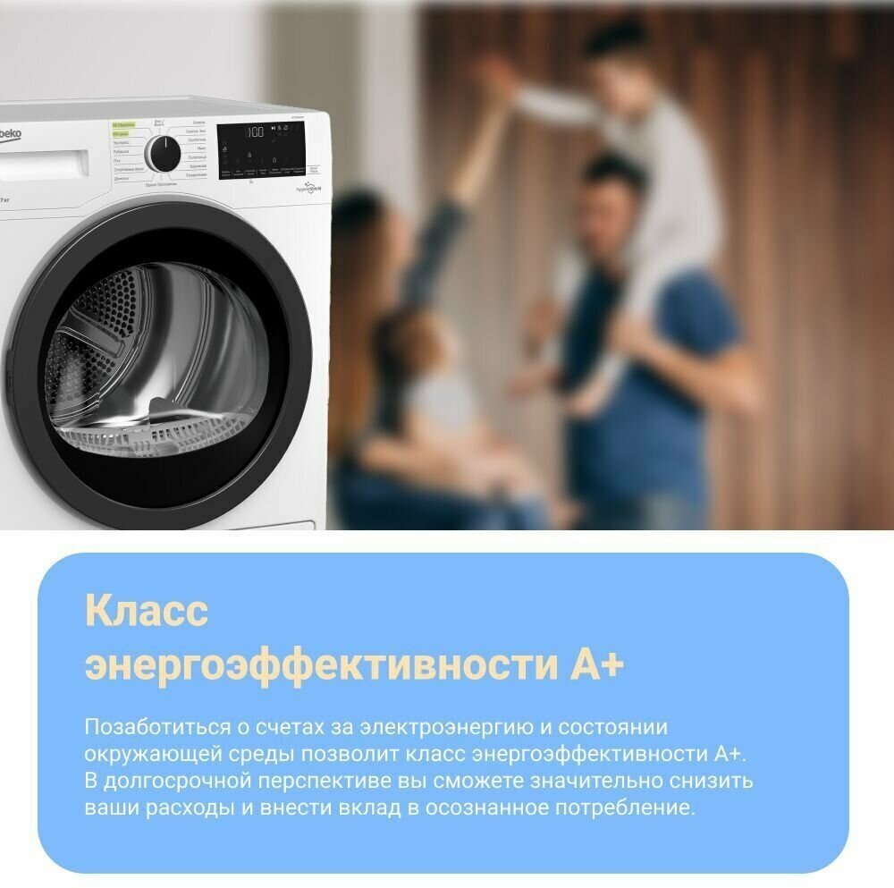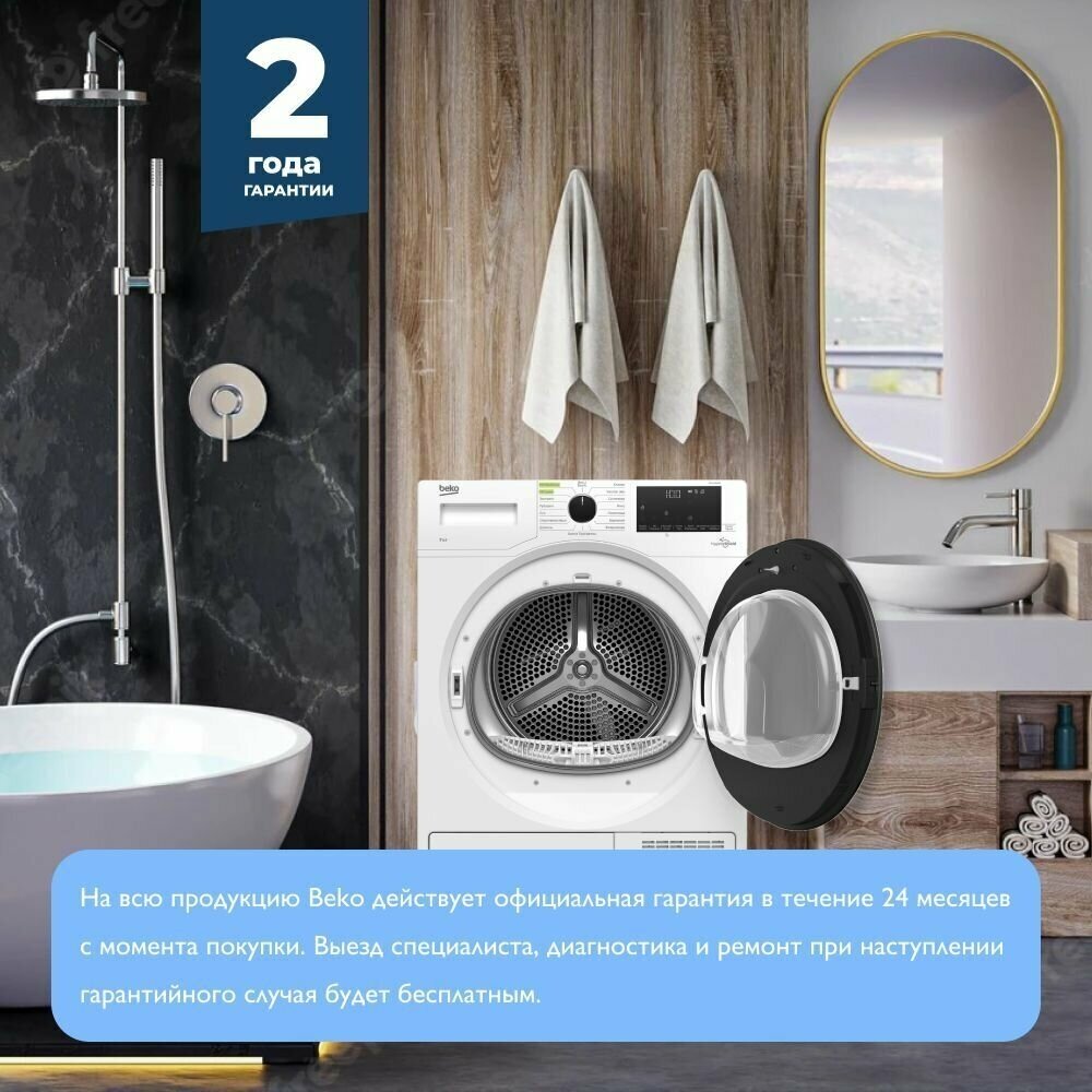 | Особенности | Сушильная машина Beko с технологией Heat Pump оснащена тепловым насосом, который обеспечивает бережную сушку одежды с минимальными энергозатратами. Дезинфецирующая обработка ультрафиолетом. Автоматический цикл разглаживания. Автоматическое охлаждение белья в конце программы. |