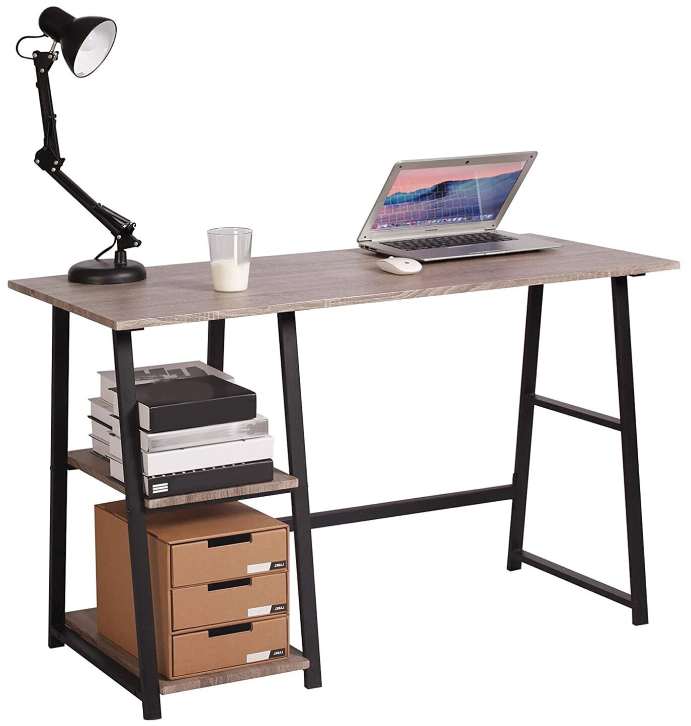 Стол на металлокаркасе BRABIX "LOFT CD-006", 1200х500х730 мм, 2 полки, цвет морёный дуб, 641224