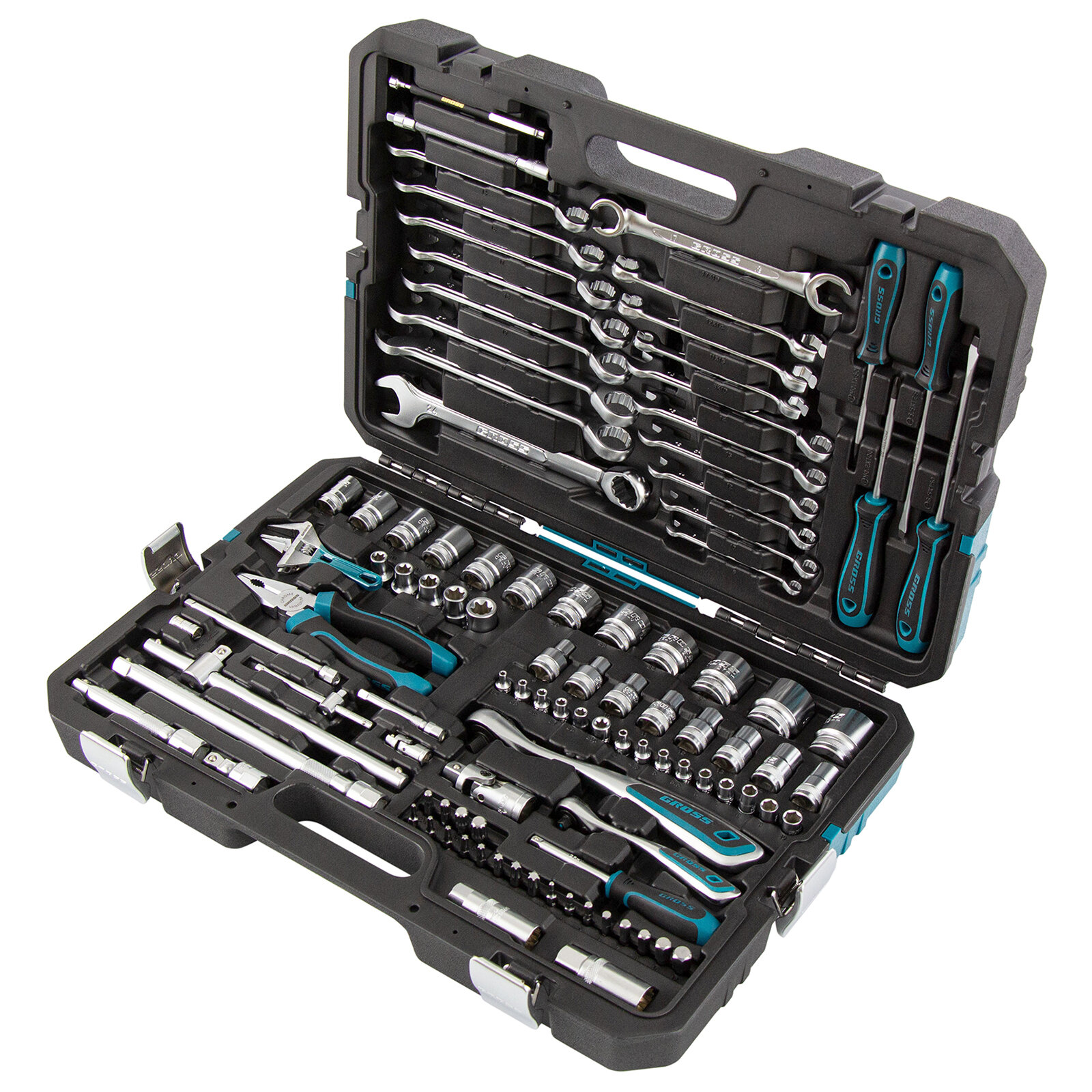 | Комплектация | ключи гаечные; пассатижи; плоскогубцы; трещотка. биты; биты с головками; торцевые головкигибкий удлинитель для бит; переходник для головок; удлинитель для бит; шарнир карданный для головок |