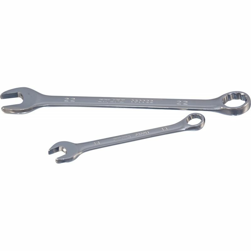 Самый распространенный гаечный ключ представляет собой конструкцию, объединяющую рожковую и накидную части. Инструмент изготовлен из высоколегированной стали, по стандарту ANSI/ASME B107.6 и соответствует требованиям ГОСТ 2838-80. Чечевичное сечение рукоятки с увеличенной толщиной ребра позволяет развить более высокий крутящий момент по сравнению с ключами двутаврового сечения европейского типа. Устойчивое к механическому воздействию и агрессивным средам зеркальное, трехслойное, хромоникелевое покрытие облегчает удаление загрязнений с инструмента после работы. Сочетание двух одноразмерных профилей компенсируют недостатки каждого в отдельности, обеспечивая передачу максимально возможной нагрузки на крепеж, при использовании накидной части и удобство использования рожковой части в труднодоступных местах.