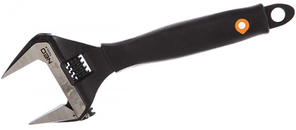 Ключ разводной NEO кованый из прочной хромованадиевой стали. Отличается очень широким рабочим диапазоном губок. Просвет губок на 40% больше, чем у стандартных ключей. Расширенная и утонченная головка позволяет работать в труднодоступных местах. Эргономичная рукоятка с TPR-покрытием, стойким к воздействию масел и смазок.