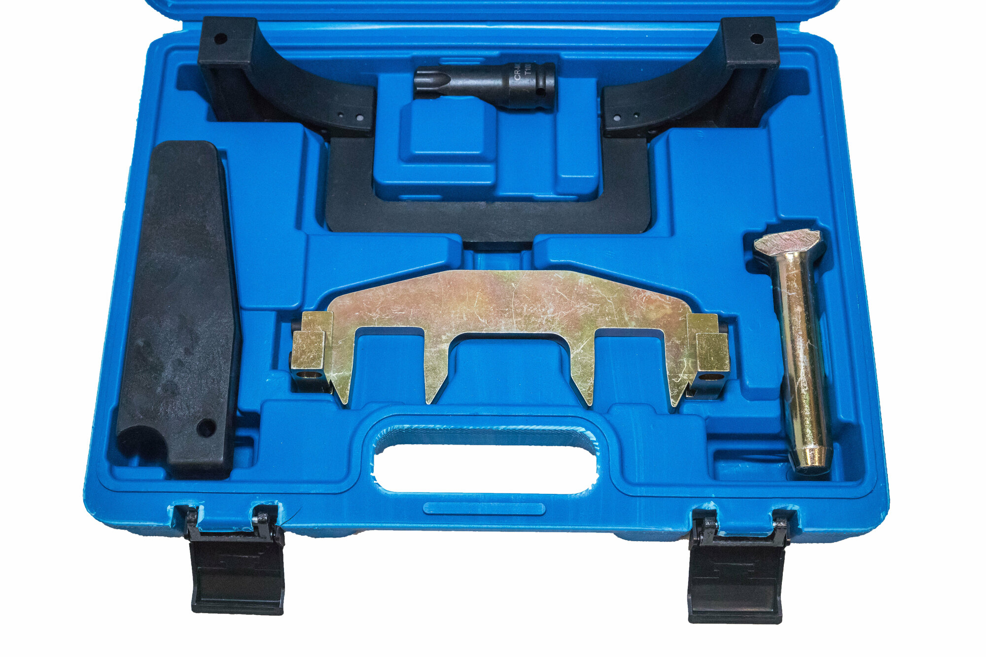 Набор предназначен для установки фаз ГРМ автомобилей Mercedes с двигателем M271. Комплект включает в себя все необходимые инструменты для правильного выставления зажигания автомобилей оснащённых данным мотором. Комплектация: • Прижимная планка для сборки цепи 271 589 01 40 00 • Фиксатор распредвалов 271 589 00 61 00 • Оправка для запрессовки заглушек 271 589 00 15 00 • Клин для фиксации натяжителя цепи 271 589 00 31 00• Сервисный ключ для фазорегуляторов 271 589 00 10 00 09 / 11CW