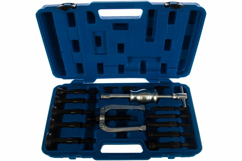 Инструмент предназначен для снятия подшипников с внутренним диаметром от 8 до 58 мм из глухих отверстий с помощью обратного молотка. Используется в обслуживании и ремонте различных автомобилей и механизмов. Комплектация : - Съёмник: 62 мм. - Молоток обратный, ударный. - Захваты цанговые 8-58 мм, 10 шт: 8-11 мм, 12-17 мм, 18-23 мм, 24-29 мм, 30-34 мм, 35-38 мм, 39-43 мм, 44-48 мм, 49-53 мм, 54-58 мм. - Удлинители резьбы 3 шт: 6 мм, 8 мм, 10 мм. Кейс пластиковый. Назначение : Демонтаж подшипников из глухих отверстий. Применение : Подшипники с внутренним диаметром от 8 до 58 мм. Упаковка: Прочный переносной кейс.