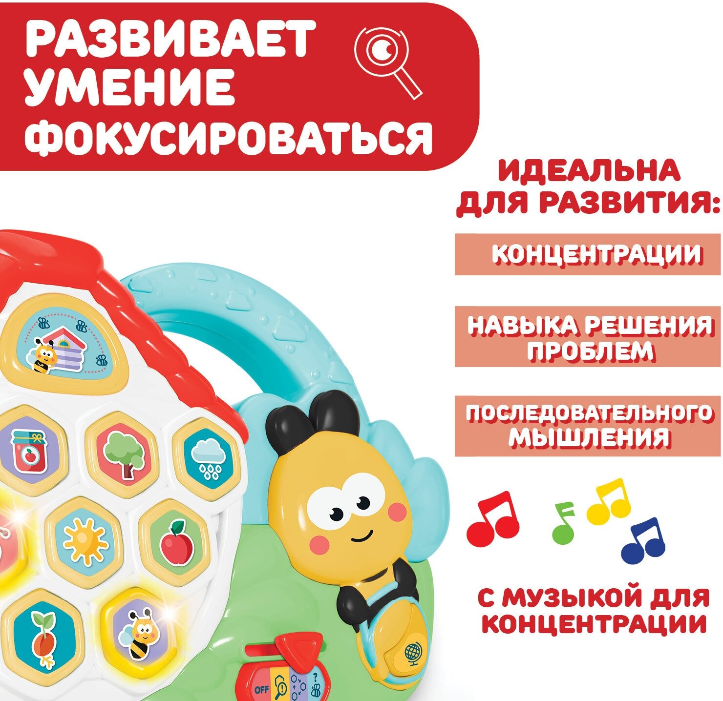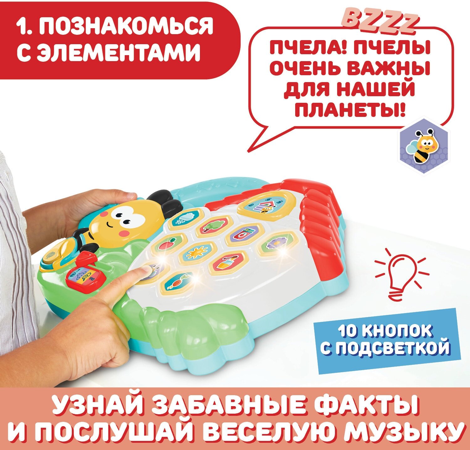 Самокорректирующаяся игрушка со световыми и звуковыми эффектами для распознавания элементов станет отличным обучающим подарком для мальчиков и девочек от 3 лет.
