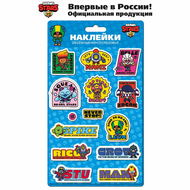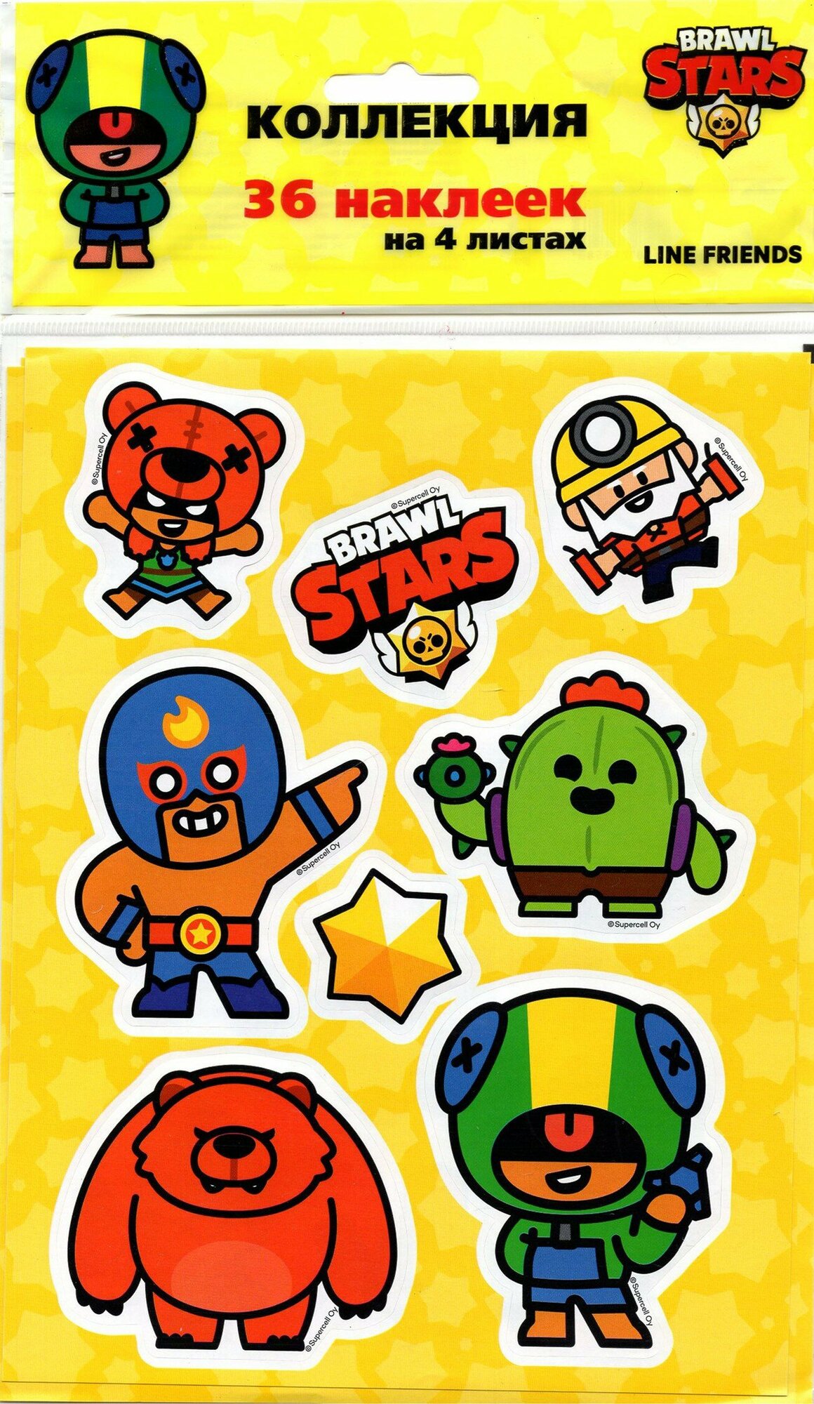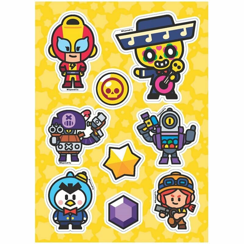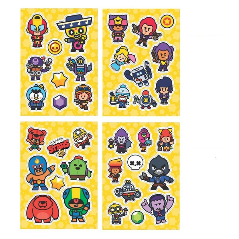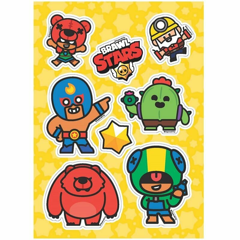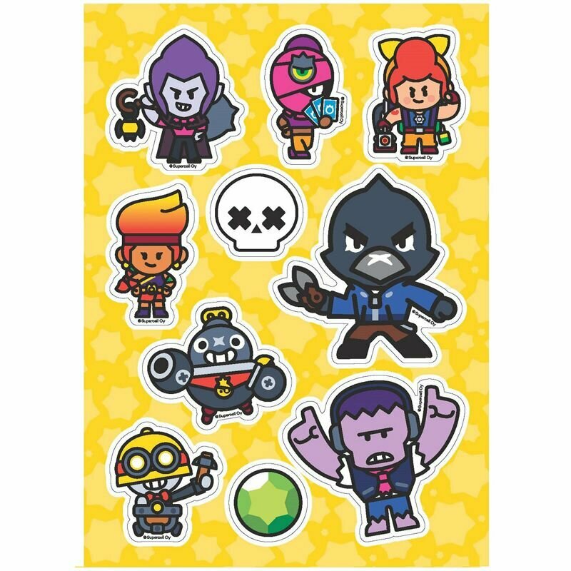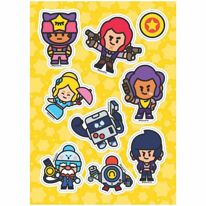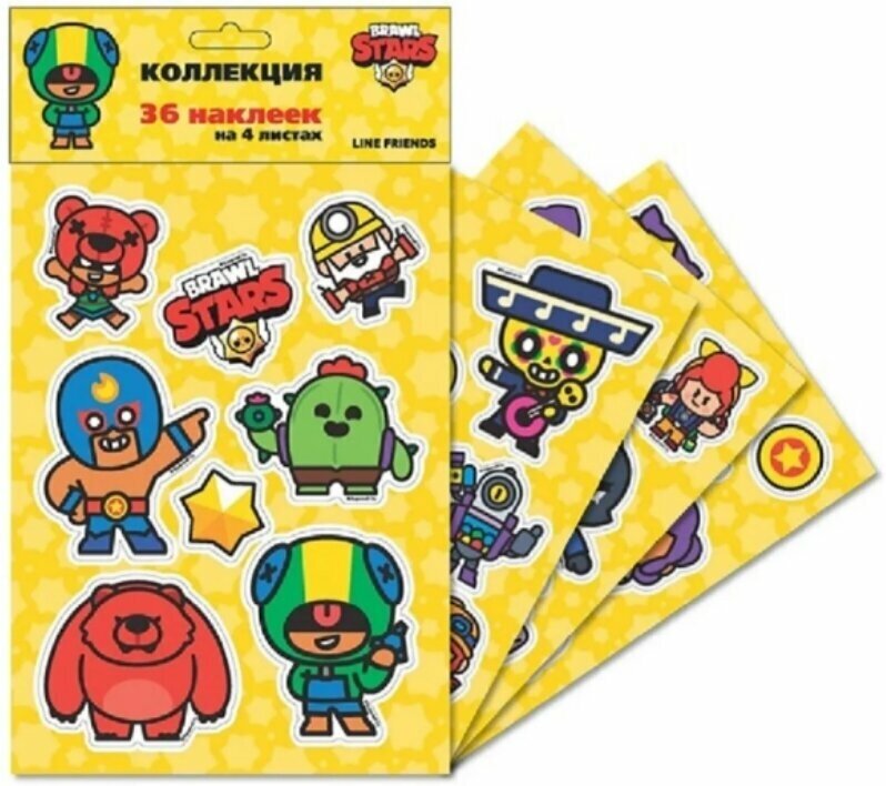 В коллекции ты найдешь целых 36 красочных наклеек героев, их верных помощников и значков, а еще логотип Brawl Stars!