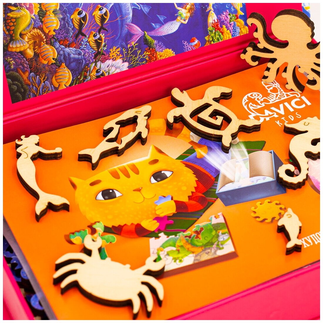 Добро пожаловать в удивительный мир художественных деревянных пазлов от компании DaVICI. Любовь к пазлам выходит на новый уровень и удовольствие от процесса может увлечь за собой даже тех, кого раньше не тянуло собирать пазлы. Чарующие формы деталей, прекрасные картины и натуральное дерево создают уникальные и неповторимые пазлы DaVICI. Каждый пазл полон загадок, отсылок и сюрпризов, которые будут открываться вам по мере сборки картины!