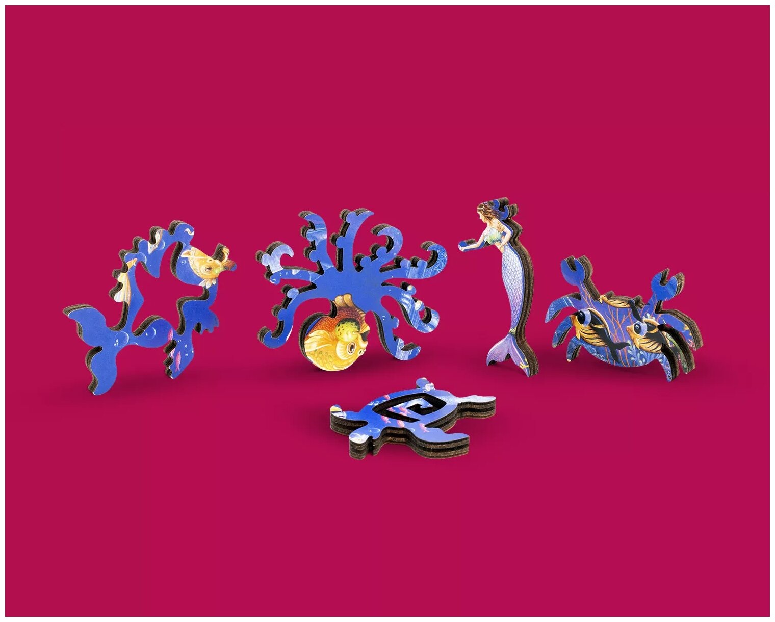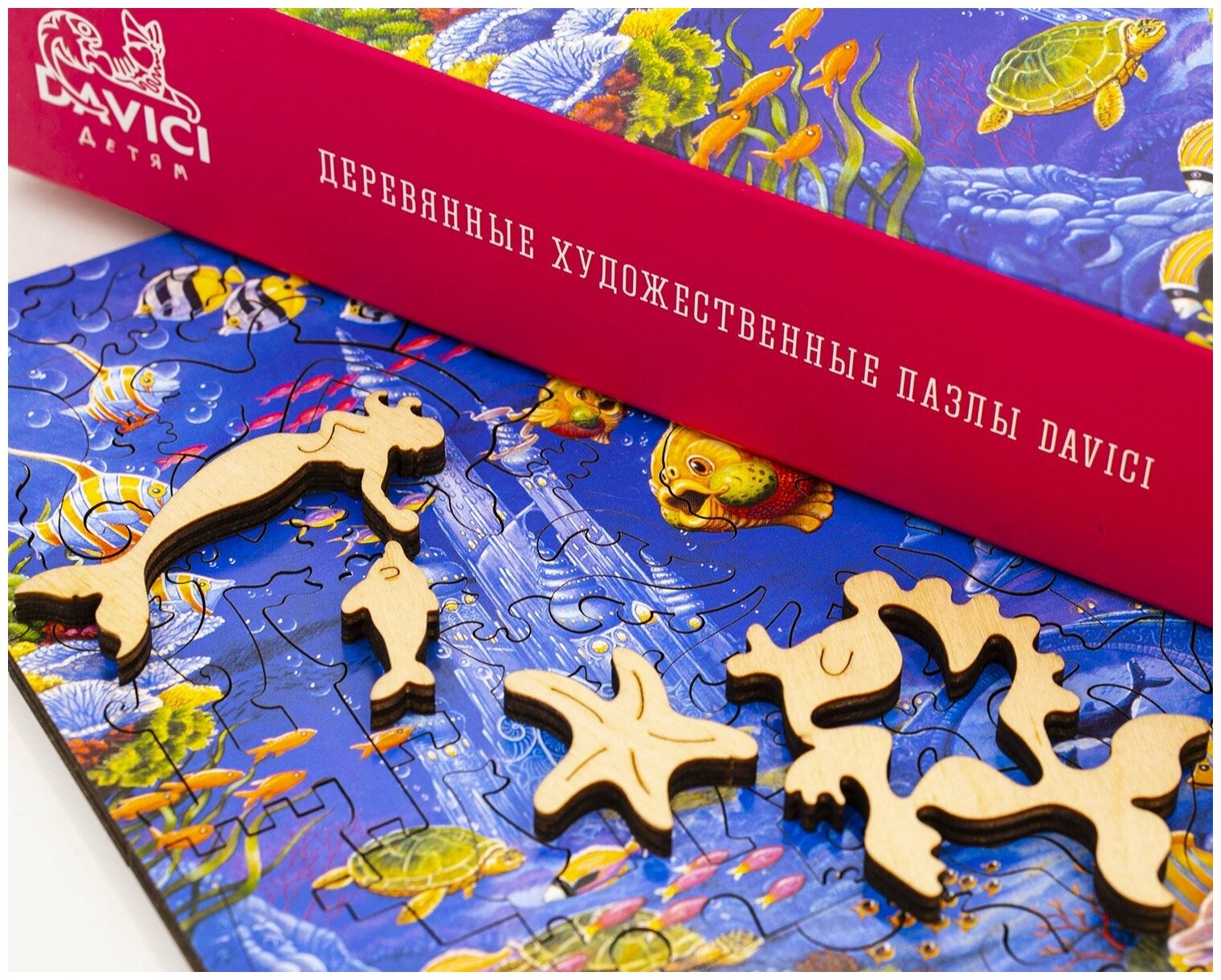 В чём особенность?Главной особенностью деревянных пазлов DaVICI, безусловно, являются сами детали пазла. Каждый элемент имеет свою форму, и, по сути своей, является картинкой в картинке. Все элементы стыкуются плавными изгибами между собой и образуют полную картину.