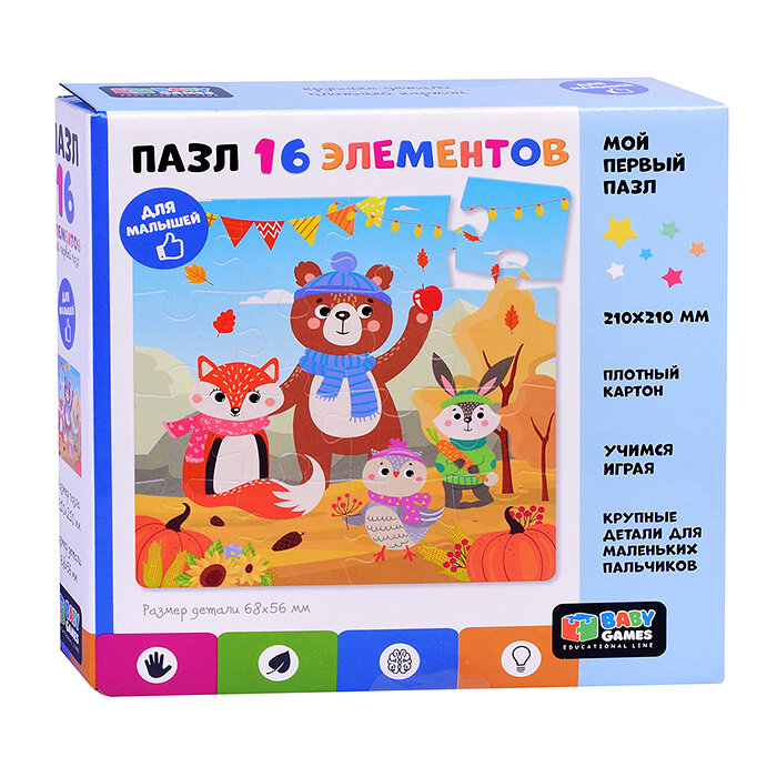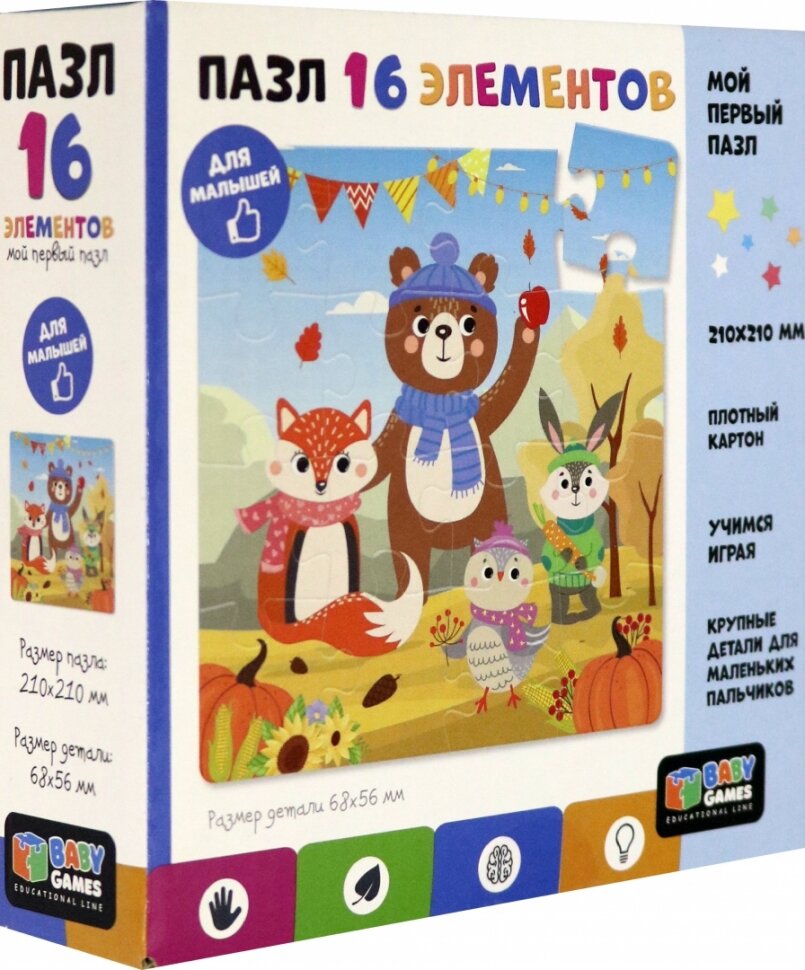 Яркий пазл 16 элементов понравится любому ребенку, а сборка картинки принесет радость не только малышам, но и их родителям. Соберите всю коллекцию новых пазлов!