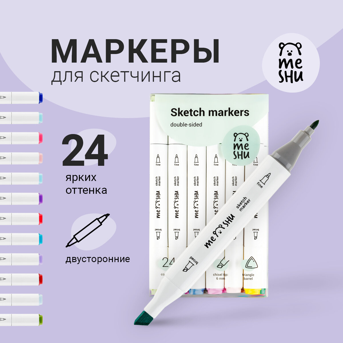 Набор маркеров для скетчинга 24 цвета основные цвета Meshu