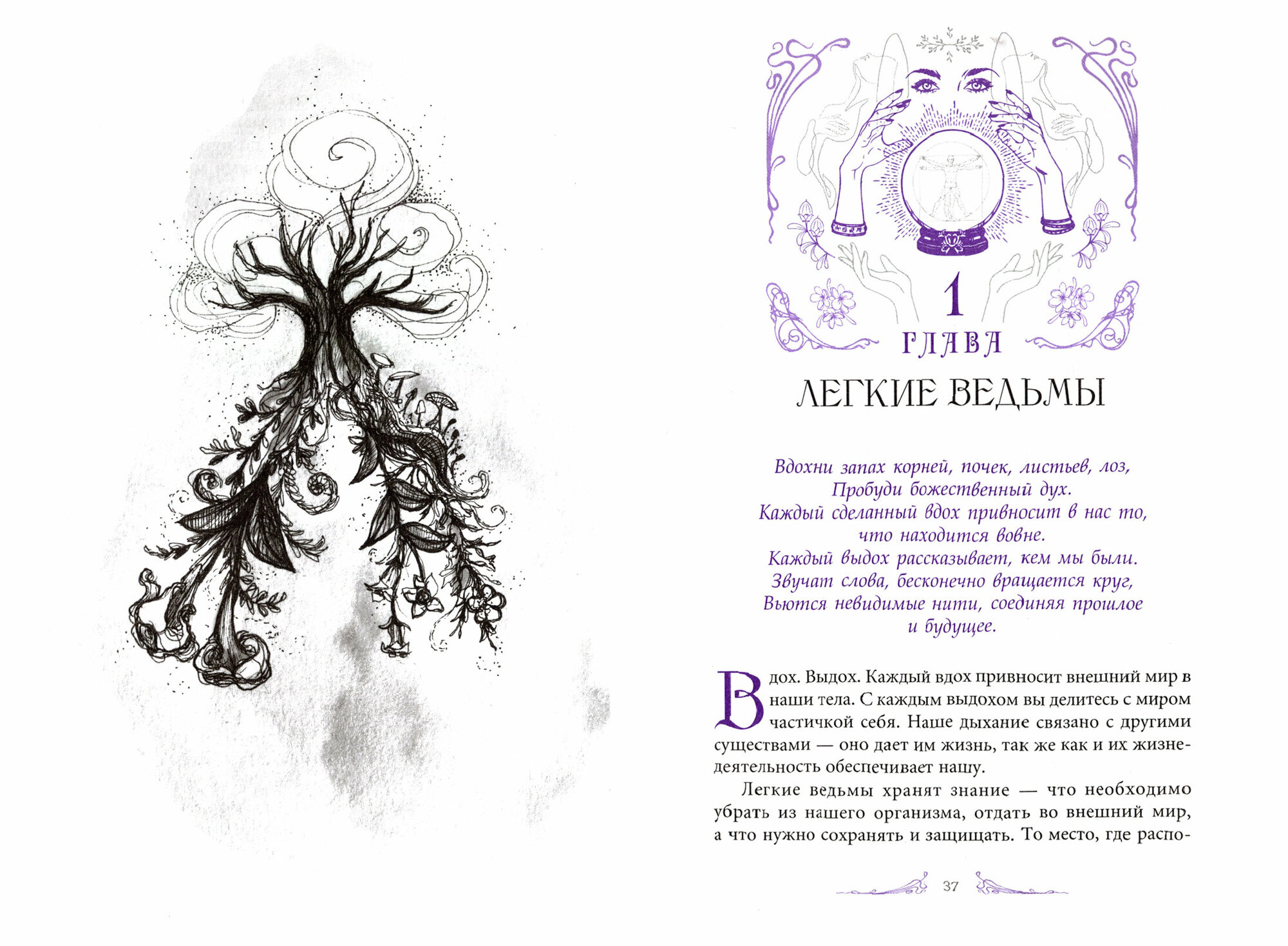 «Ваше тело сочетает в себе все стихии: Воздух — это дыхание; Вода — кровь; Огонь — внутреннее горение, то есть биение сердца, пищеварение, электрические нервные импульсы; Земля — кожа, кости; Дух — сознание. Тело и Дух переплетены между собой, это единение и составляет вашу сущность. Если мы научимся любить свое тело таким, какое оно есть, если примем свою анатомию ведьмы, мы воссоединимся с магией, что живет внутри нас, и с миром вокруг. Наши ежедневные ритуалы — это дань уважения нашему телу и всему, что его окружает.