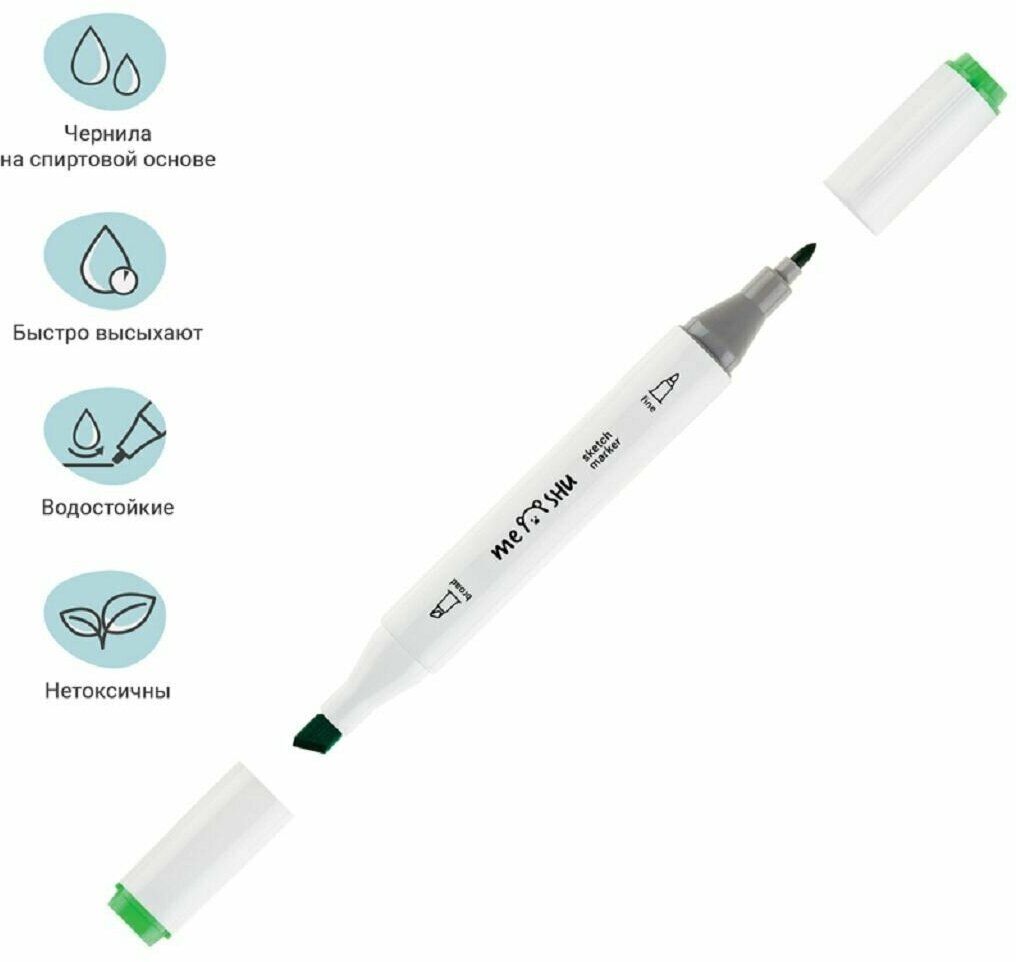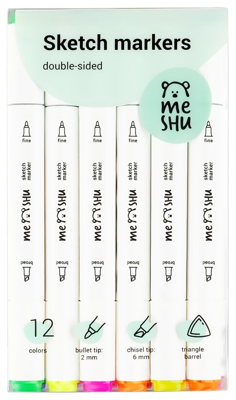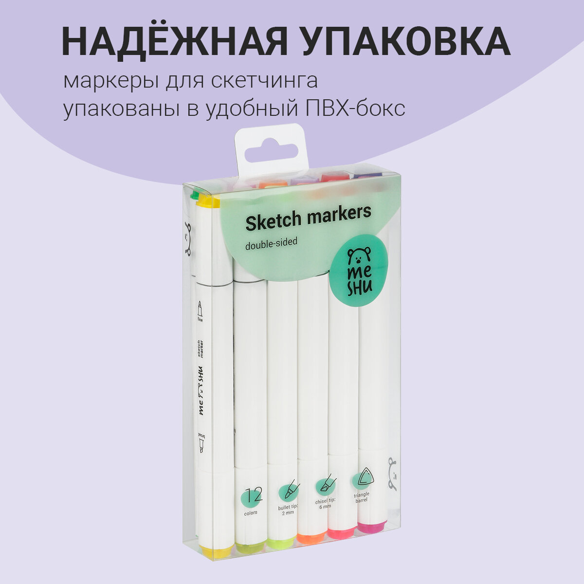 Набор двусторонних маркеров для скетчинга Meshu - идеальный выбор для художников, дизайнеров, иллюстраторов и любителей скетчинга, подходят для создания анимэ и манги. Эргономичный трехгранный корпус удобно лежит в руке и позволяет эффективно прорабатывать мелкие детали рисунка. Чернила на спиртовой основе - быстро высыхают, водостойкие, нетоксичны и не портят поверхность бумаги. Маркеры обладают пулевидным (2 мм) и скошенным (6 мм) наконечниками, толщина линии 1.0-7.0 мм, что позволяет прорабатывать как мелкие детали рисунка. так и закрашивать большие области.
