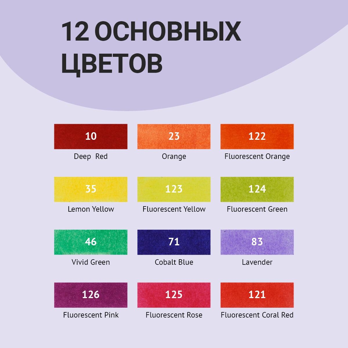 Набор маркеров для скетчинга 12 цветов основные и флуоресцентные цвета Meshu