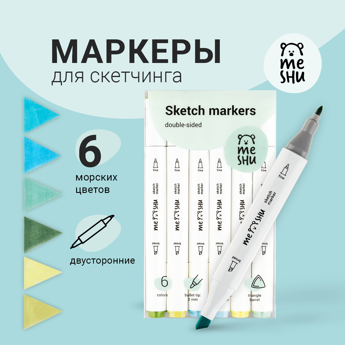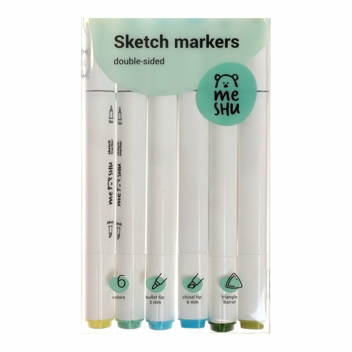 Набор маркеров для скетчинга 6 цветов морские цвета Meshu