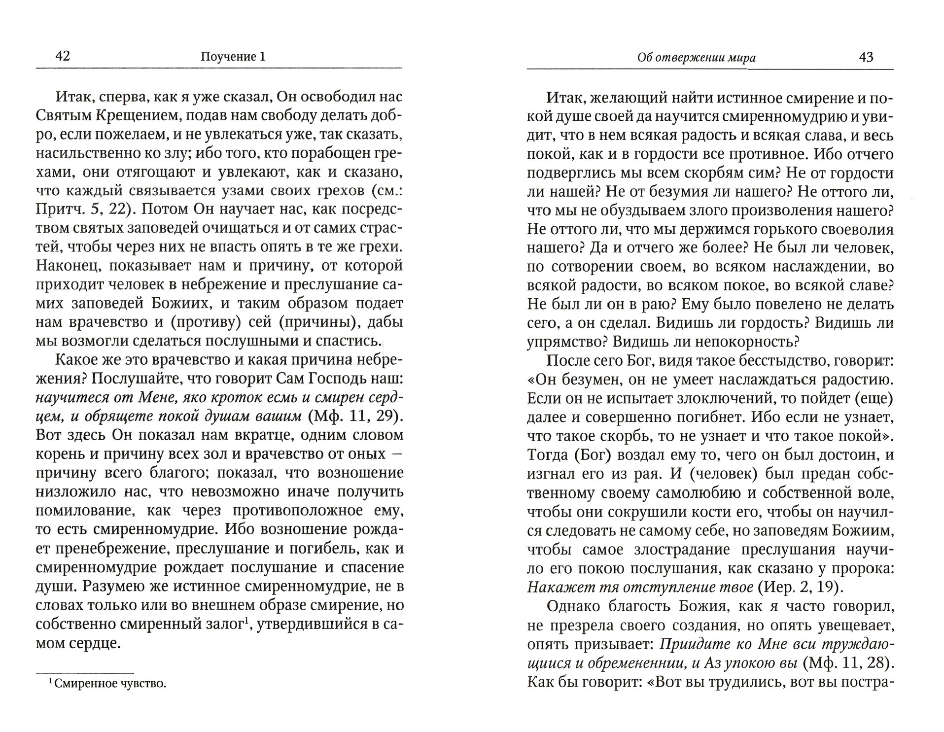 Поучения прп. Дорофея исполнены глубокой духовной мудрости, они раскрывают внутреннюю жизнь христианина, постепенное восхождение его в меру возраста Христова (Еф. 4,13). Автор тонко чувствует состояние человеческой души и подробно анализирует ее движения и помыслы, опираясь при этом на учение святых отцов Церкви: Василия Великого, Григория Богослова и Григория Нисского. Творение аввы Дорофея отличается ясным, отточенным стилем, простотой и доступностью изложения. Спасительные советы преподобного старца, написанные для монахов, будут полезны всем, кто стремится жить по заповедям Божиим.