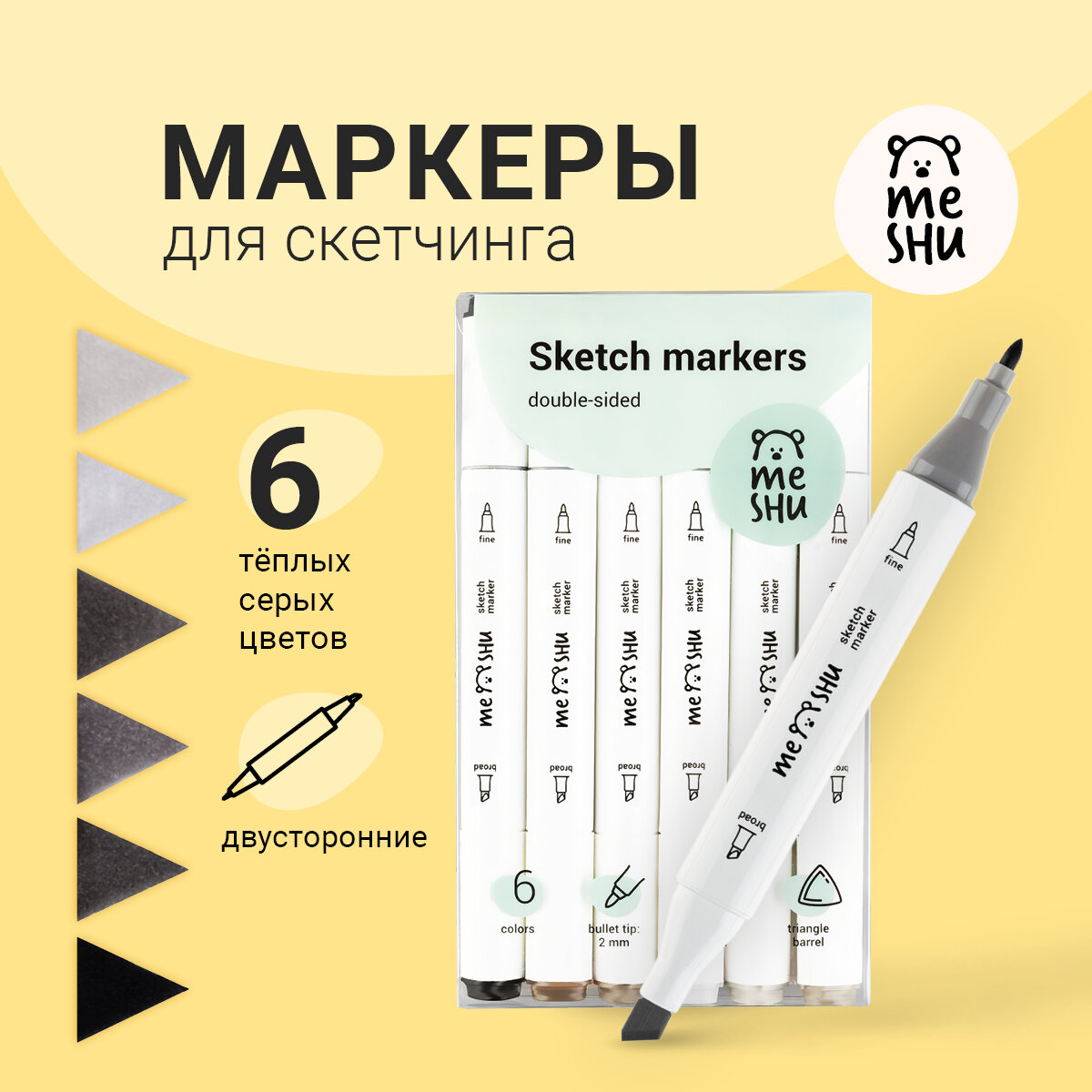 Набор маркеров для скетчинга 6 цветов теплые серые цвета Meshu