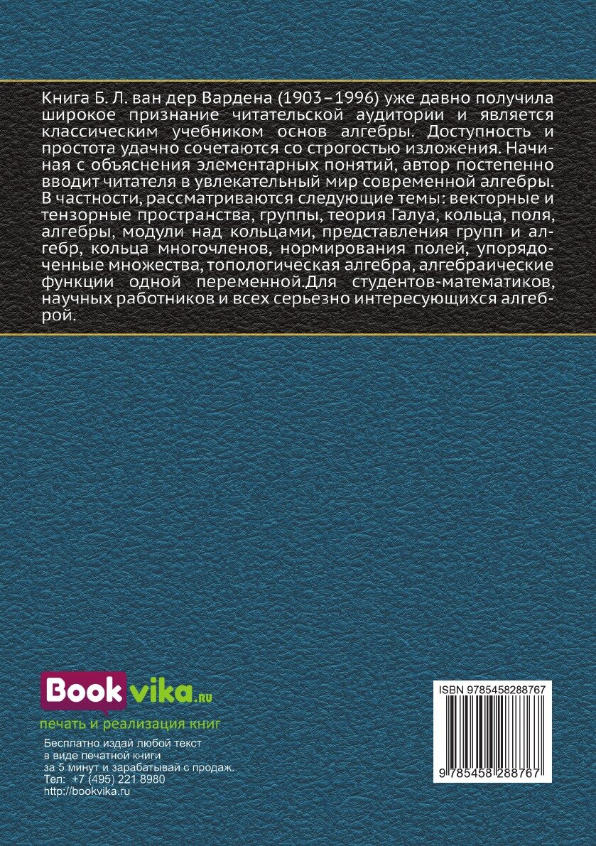 Книга: Алгебра (Ван дер Варден Бартель Леендерт); Книга по Требованию, 2012