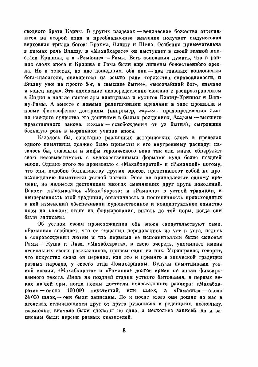 Фрагменты древнеиндийских эпических поэм "Махабхарата" и "Рамаяна" входят во второй том первой серии БВЛ. Перевод с санскрита С. Липкина, подстрочные переводы О. Волковой и Б. Захарьина ("Махабхарата"). Текст "Рамаяны" печатается в переводе В. Потаповой с подстрочными переводами и прозаическими введениями Б. Захарьина. Вступительная статья П. Гринцера. Примечания А. Ибрагимова, Вл. Быкова, Б. Захарьина. Прилагается словарь имен собственных (Б. Захарьин, А. Ибрагимов).
