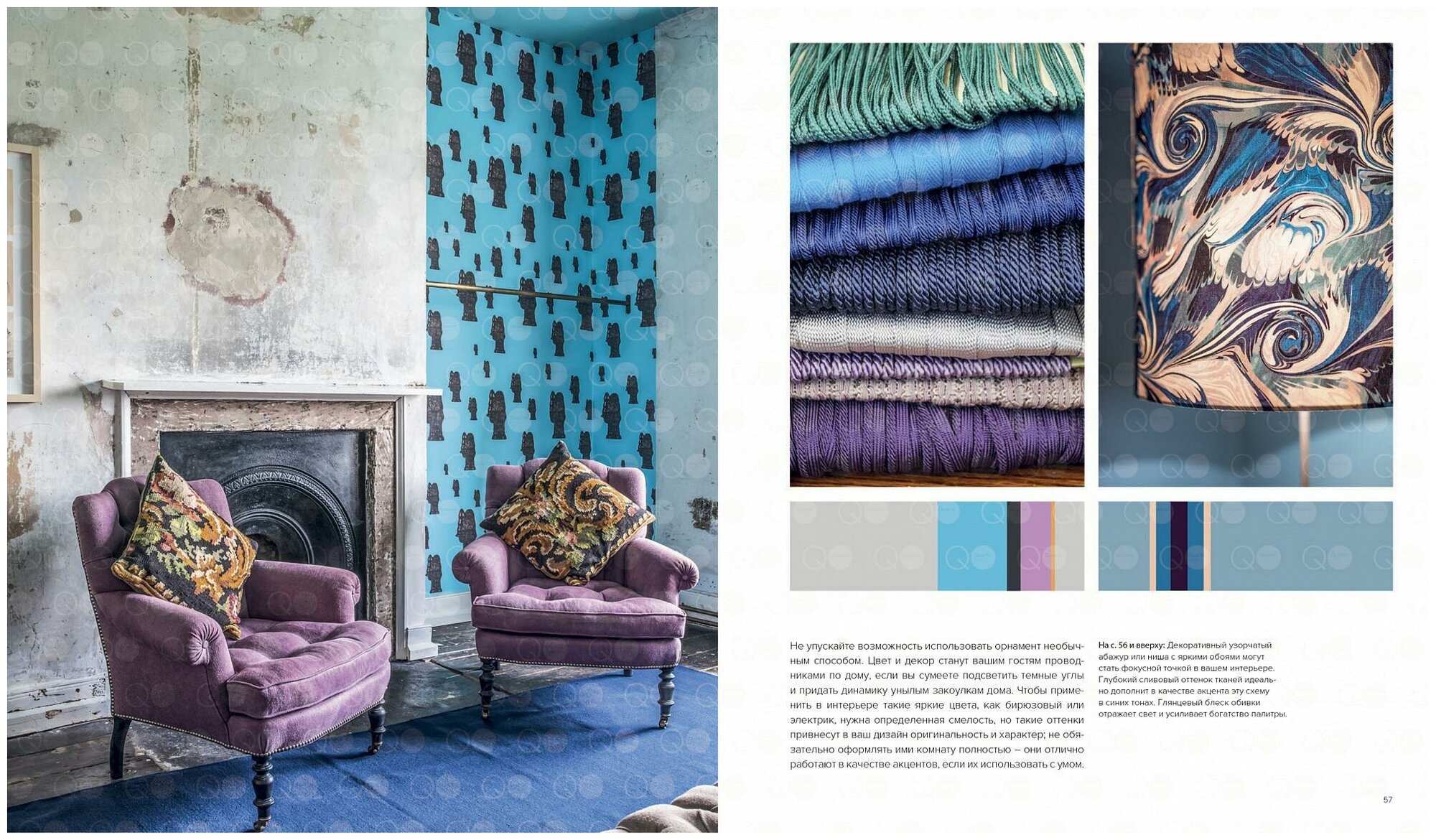 "Когда вы привносите эмоциональный аспект в цветовую палитру интерьера, это напрямую связывает вас с миром, в котором вы живете. Это напоминает нам о том, что мы - чувствующие существа и нам необходимы жизнь, любовь, смех и слезы. Нам нужен уголок для сна, пространство для отдыха и общения, места, где мы можем послушать громкую музыку, поработать или подумать. Правильное использование цвета помогает нам в выполнении повседневных задач, которые мы решаем в домашней обстановке, и реализации эмоциональных потребностей. Приступая к работе над этой книгой, я ставила перед собой задачу показать все многообразие и богатство цвета, чтобы дать вам возможность открыть свое истинное "я" и научиться выбирать именно то, что вы любите больше всего". (Анна Стармер)