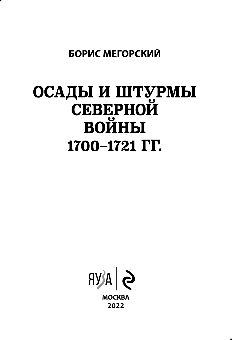 Осады и штурмы Северной войны 1700-1721 гг. (Б. В. Мегорский); Яуза, 2021