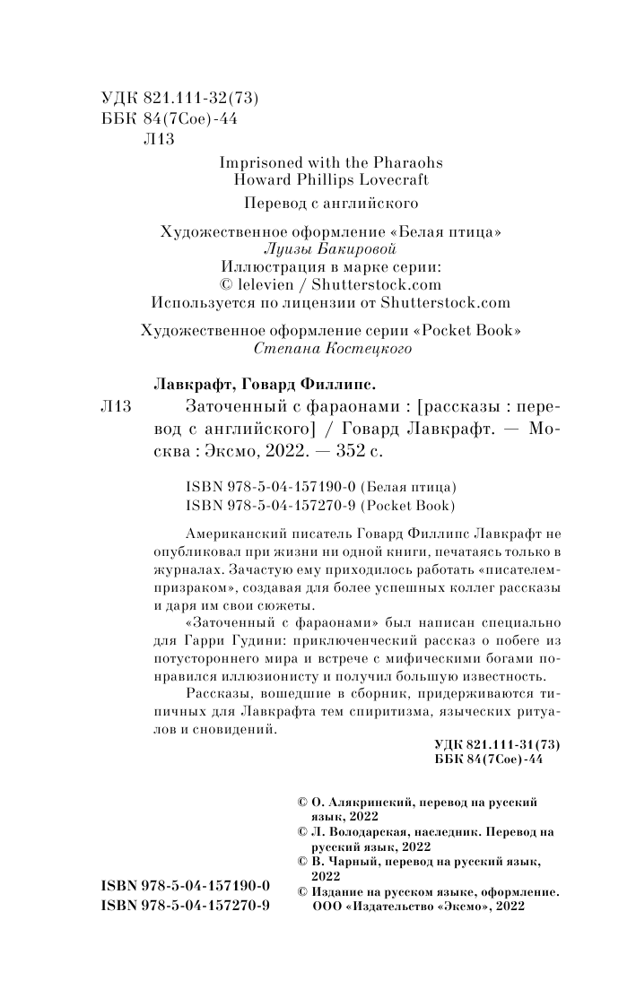 Книга: Заточенный с фараонами (Лавкрафт Говард Филлипс); ООО "Издательство "Эксмо", 2021