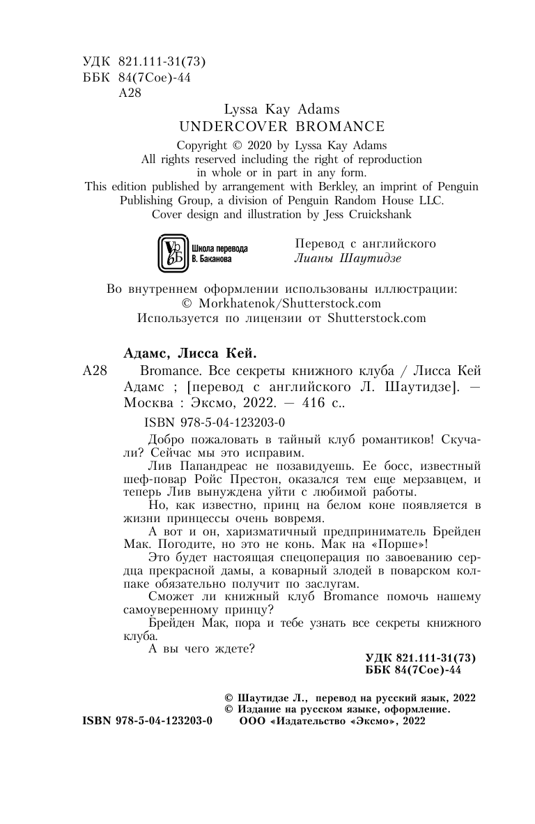Bromance. Все секреты книжного клуба (Лисса Кей Адамс); Эксмо, Inspiria, Редакция 1, 2021