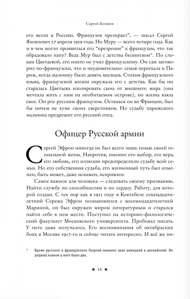 Не менее реален иной вариант. бесприютные скитанья, арест допросы с пытками, лагеря, расстрел, петля (обещать, не значит исполнить, знаете ли). Как для Марины Ивановна и ее близких. Книга Сергея Белякова, в общем, об этом, и в первую очередь заинтересует поклонников Цветаевой, для кого не пустой звук имена ее близких и людей, вовлечённых в сферу притяжения ее личности. Признаться, к их числу не принадлежу, я люблю Ахматову, и конечно, спорить о вкусах бессмысленно. Но читала цветаевского много и ещё больше читала о ней. Так уж вышло, что на эту тему довольно интересного написано.