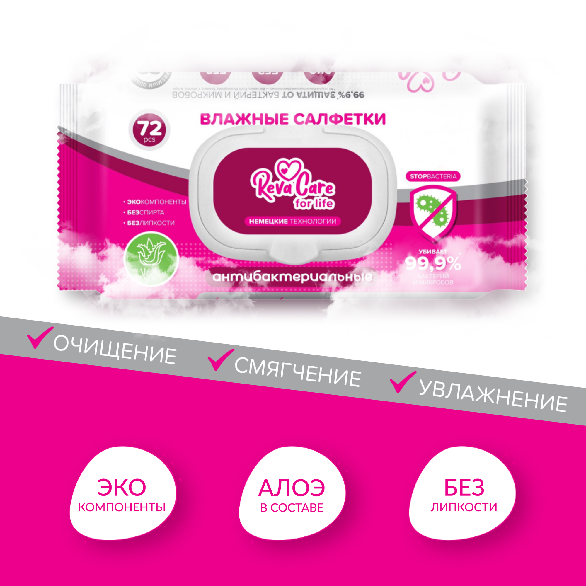 Салфетки влажные антибактериальные с экстрактом алоэ Reva Сare 72 шт Авангард ООО (488589)