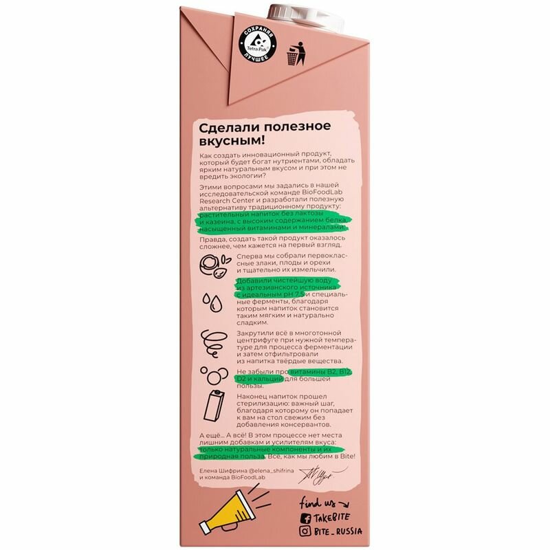 Мы производим растительное молоко Bite по особой технологии, разработанной в BioFoodLab Research Center.