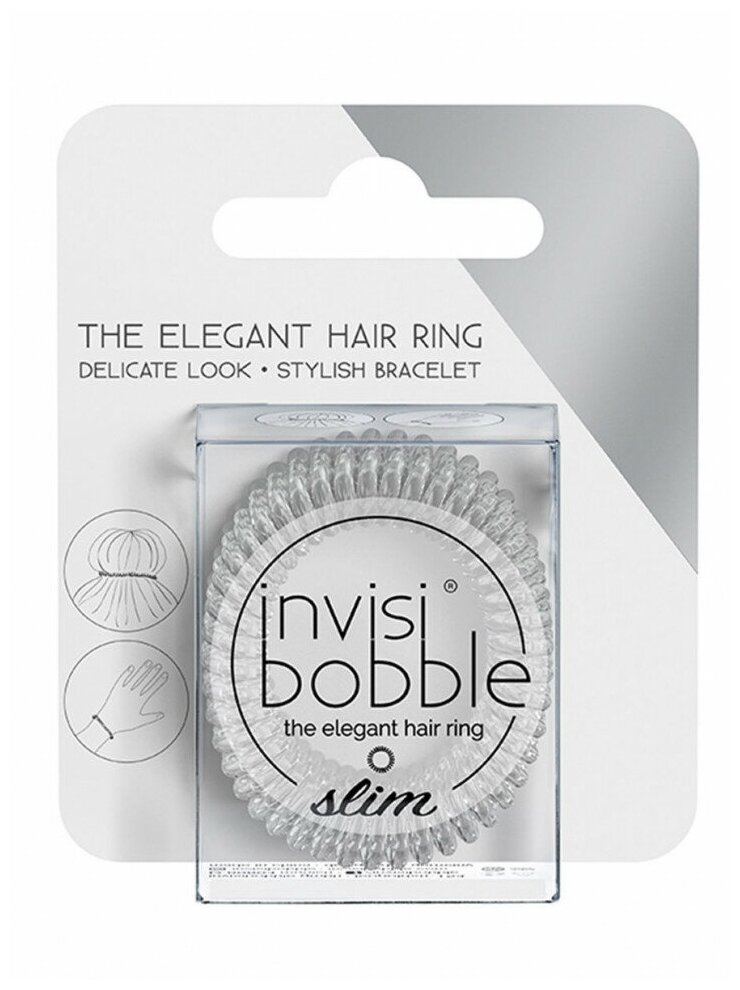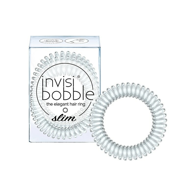 Резинки invisibobble SLIM в оттенке Cristal Clear (прозрачный) идеально подойдут к любому цвету волос! Резинки-браслеты invisibobble SLIM имеют увеличенное количество завитков, чем invisibobble ORIGINAL, а также уменьшенные в размере витки. Резинки invisibobble подходят для всех типов волос, надежно фиксируют причёску, не оставляют заломы и не вызывают головную боль благодаря неравномерному распределению давления на волосы. Кроме того, резинки-браслеты invisibobble не намокают и не вызывают аллергию при контакте с кожей, поскольку изготовлены из искусственной смолы. Вы можете легко и быстро создать стильную причёску, используя резиночку invisibobble. Если надеть резинку invisibobble SLIM как браслет, резиночка всегда будет с вами и не потеряется!
