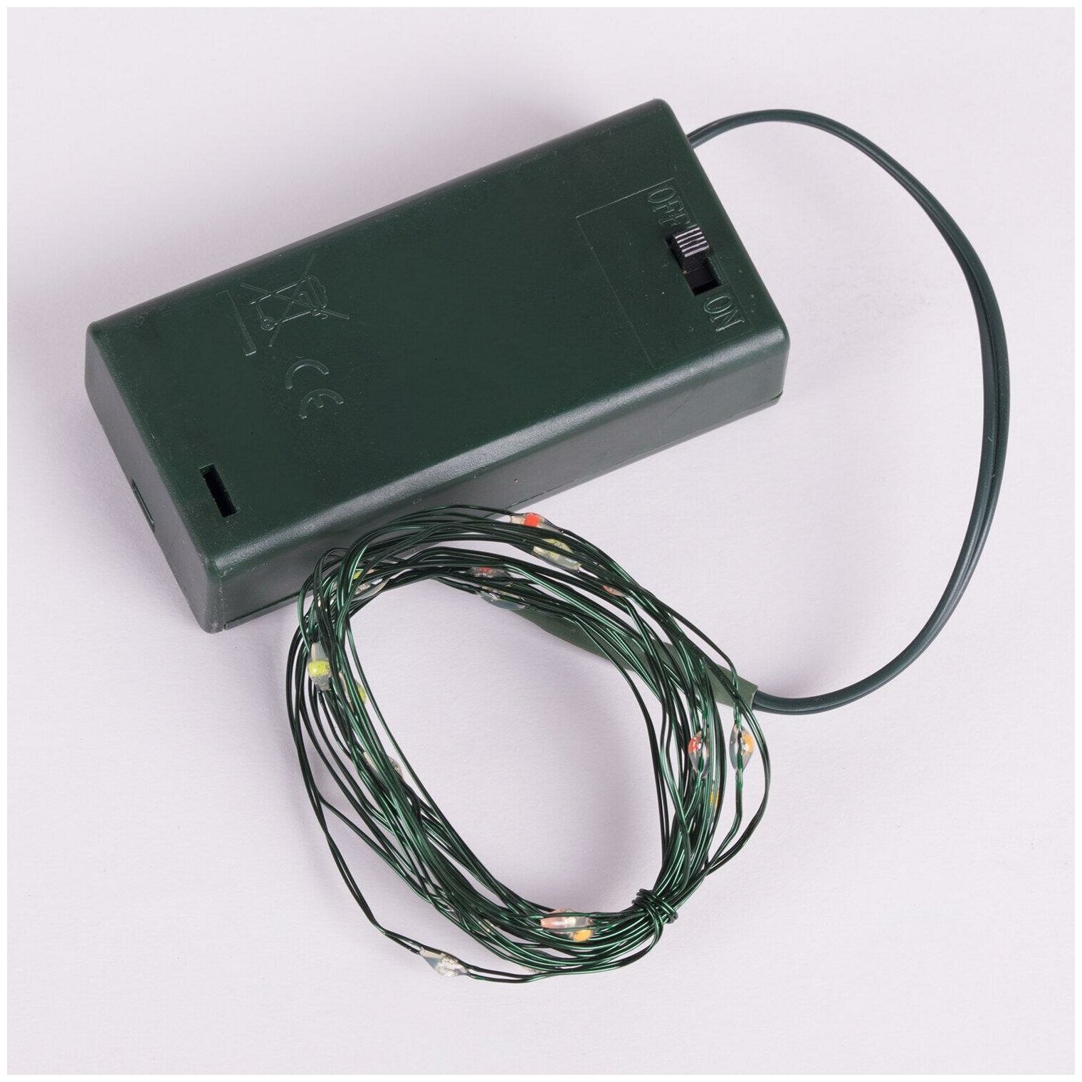 - - электрогирлянда светодиодная на батарейках (АА, 2 штуки, батарейки не входят в комплект) длиной 2 м с 20-ю светодиодными лампами, без контроллера