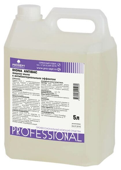 На сегодняшний день товар «Жидкое мыло Prosept с антибактериальным эффектом Diona Antibac 5 л Diona Antibac Жидкое мыло с антибактериальным эффектом 5 л» можно купить с кешбеком в 1 магазине: Яндекс.Маркет