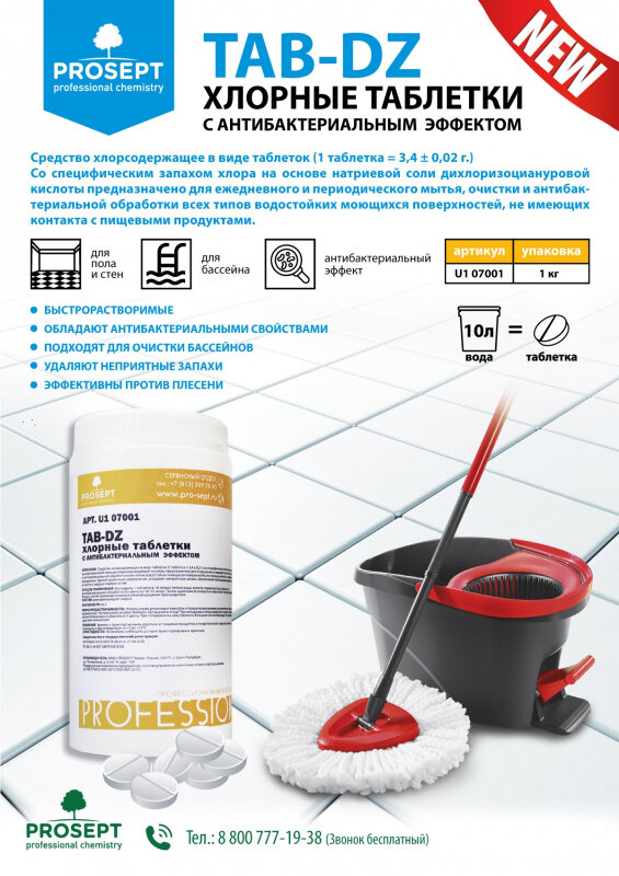 Хлорные таблетки с антибактериальным эффектом Prosept Universal TAB-DZ 1 кг Universal TAB-DZ Хлорные таблетки с антибактериальным эффектом 1 кг