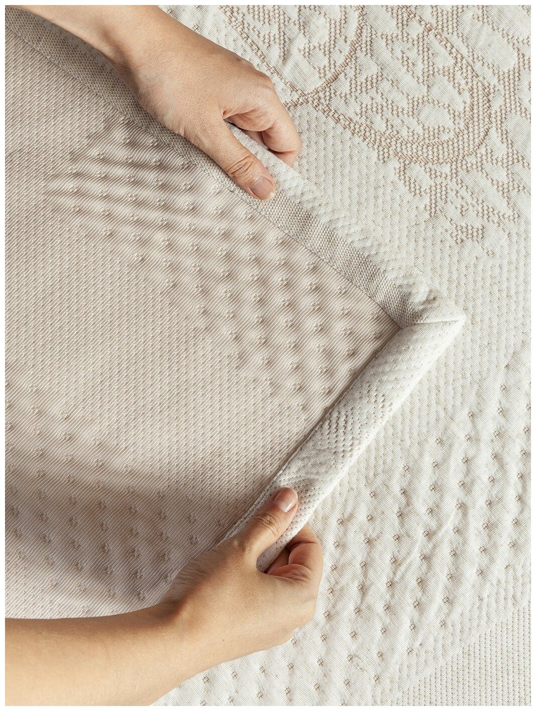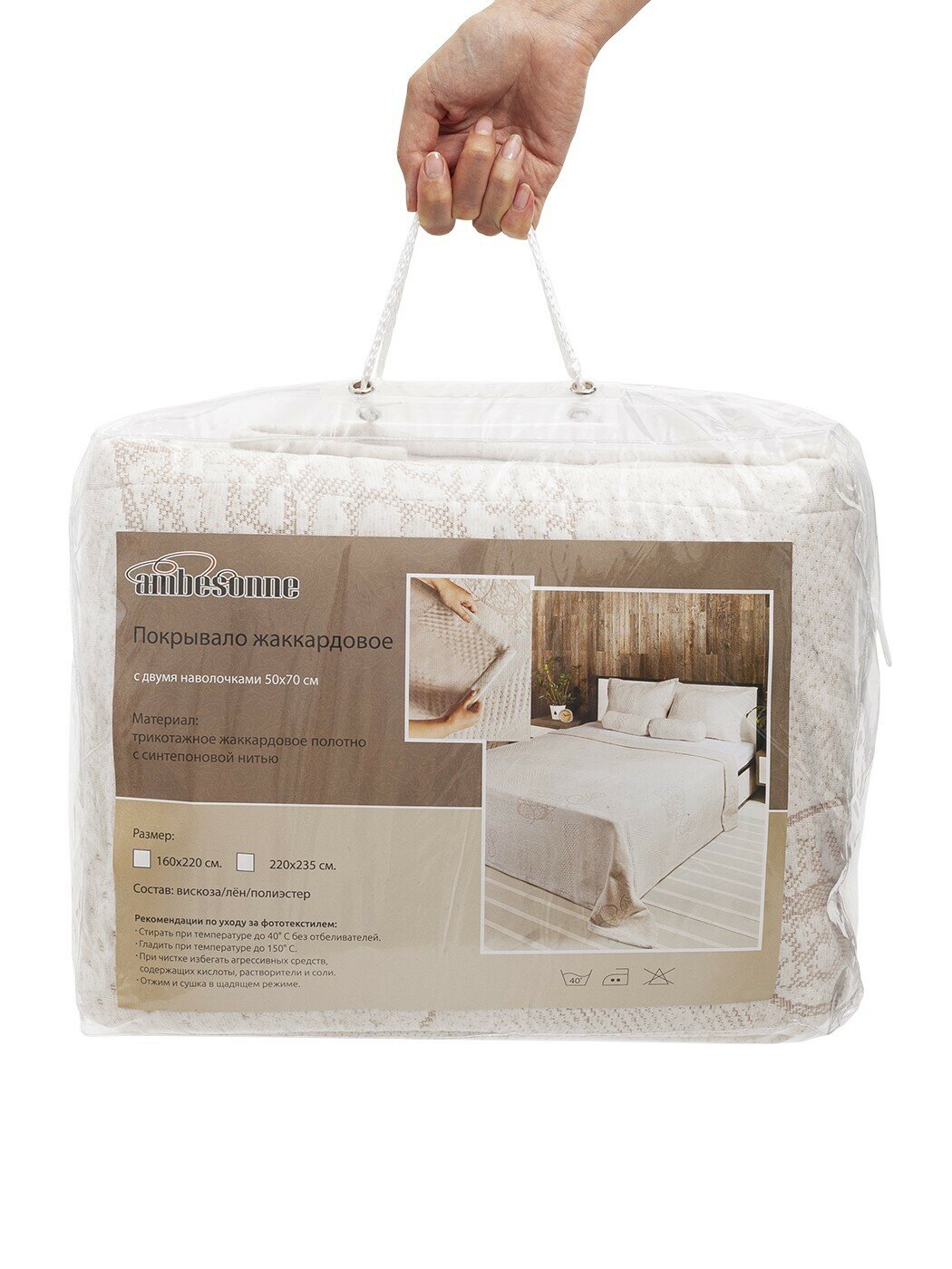 В отличие от обычных, выполненных из ткани жаккард покрывал Евро размера 220х235 см, предлагаемый комплект отличается эксклюзивным внешним видом и особой функциональностью. За счет комбинированной структуры, образованной двумя слоями плотной жаккардовой ткани и расположенным между ними утеплителем из синтепона, стеганое покрывало такого качества при необходимости может использоваться вместо пледа или легкого одеяла. Лицевая часть изделия и дополняющих комплект двух наволочек размером 50х70 см, кроме традиционного для жаккардовой основы узорчатого плетения нитей, украшена цветной декоративной фотопечатью. Внутренняя поверхность оставлена идеально белой. Покрывало с рисунком обладает гипоаллергенными свойствами, и без последствий для внешнего вида способно выдержать множество стирок.