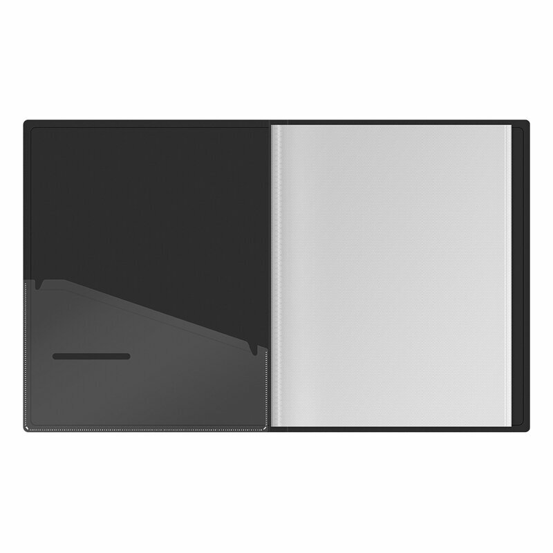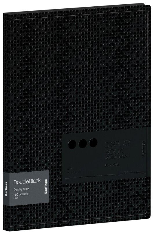 Папка Berlingo серии DoubleBlack с 60 вкладышами формата А4 - отличный и стильный помощник для хранения документов черного цвета с рельефным рисунком UV-лаком. Толщина обложки - 600 мкм. Тип скрепления – термосварка. Ширина корешка - 24 мм. Папка изготовлена из высококачественного полипропилена с матовой текстурой поверхности "песок", на которой не видно отпечатков пальцев и мелких царапин. Внутренняя сторона обложки имеет чёрный цвет и оснащена плотным прозрачным карманом для удобного хранения мелочей: ручки, заметок, визиток, дисков, флешек и др. Папка выполнена в размере 310х233х24 мм. Папка имеет 60 прозрачных листов-карманов увеличенной толщины 30 мкм, надёжно скреплённых сваркой. Вмещает до 100 бумажных листов. Индивидуальная упаковка в прозрачный пакет.